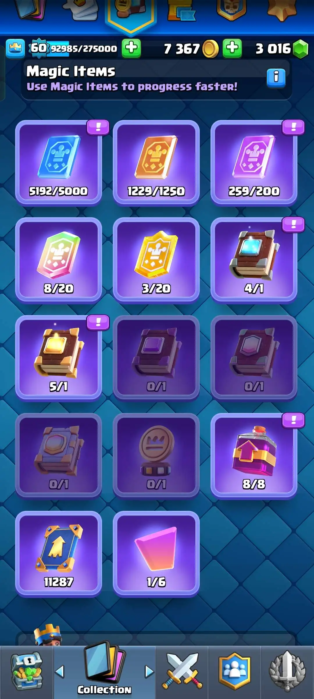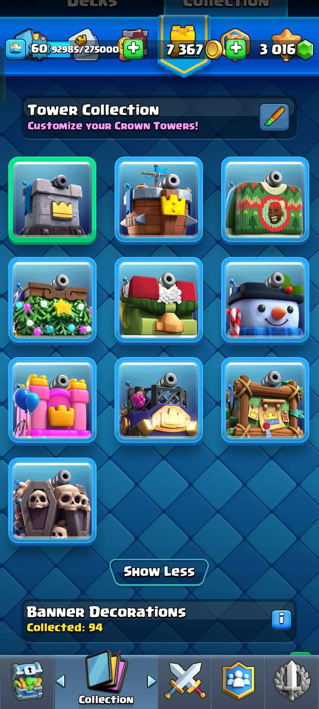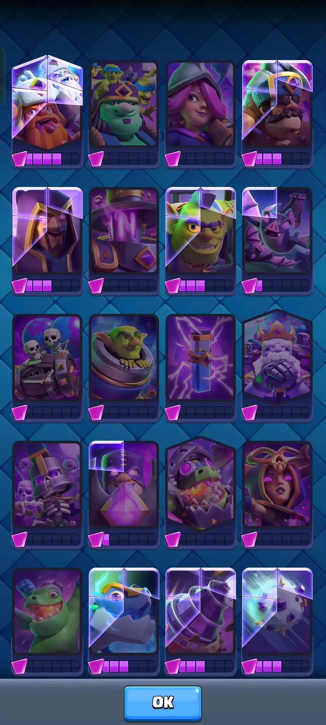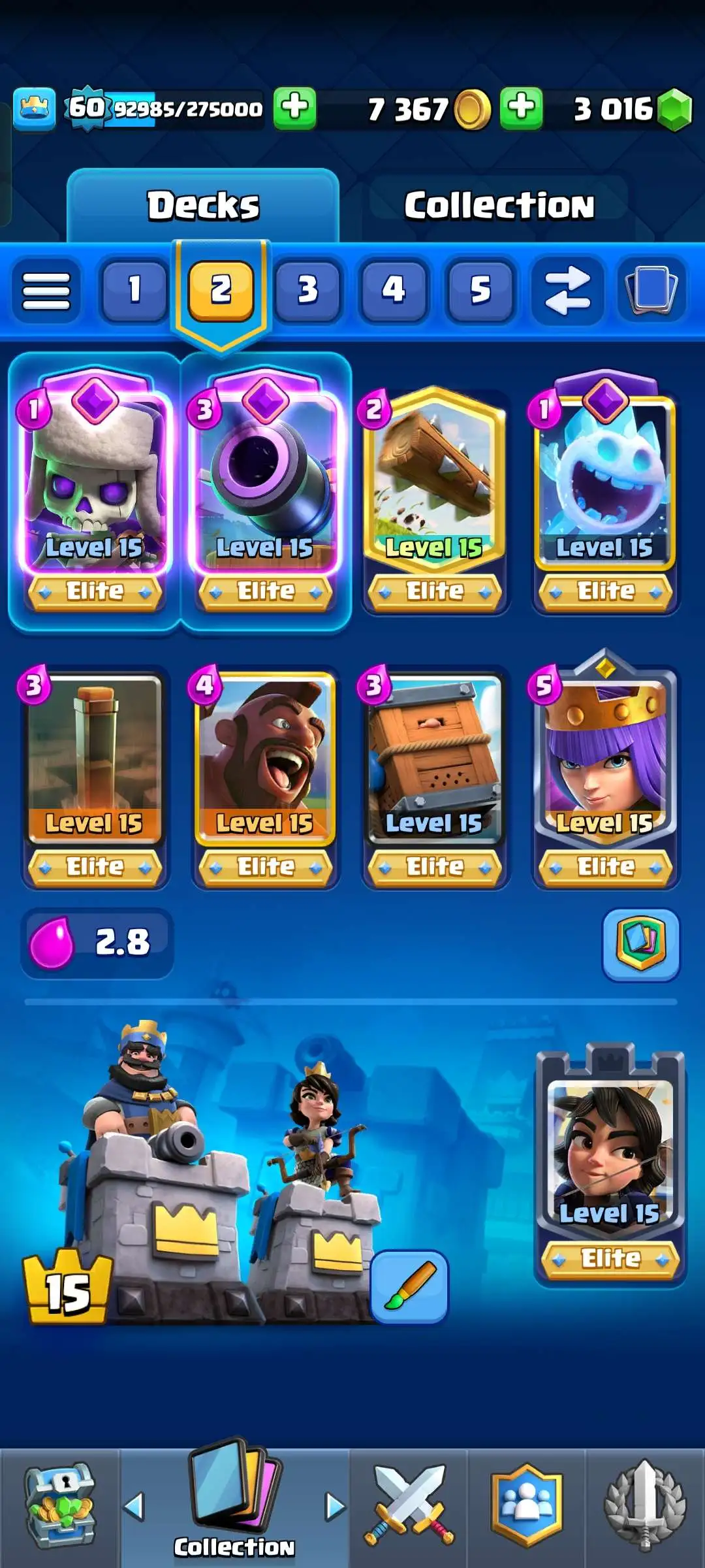 CR Lvl 60 ✨ 12750 Trophy ✨ KT 15 ✨ 24 Elite Cards ✨ 82 max cards ✨ 17 Evo Cards ✨ 122 Emotes ✨ 9 Tower skins
