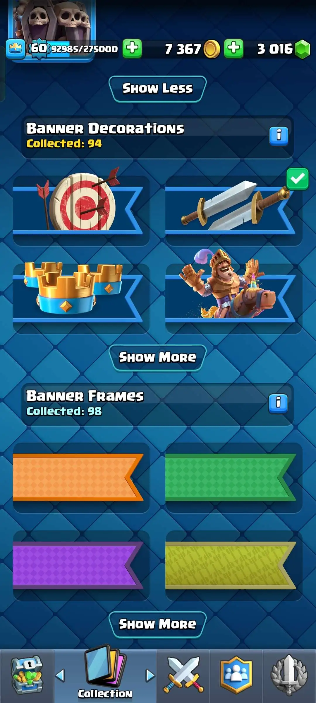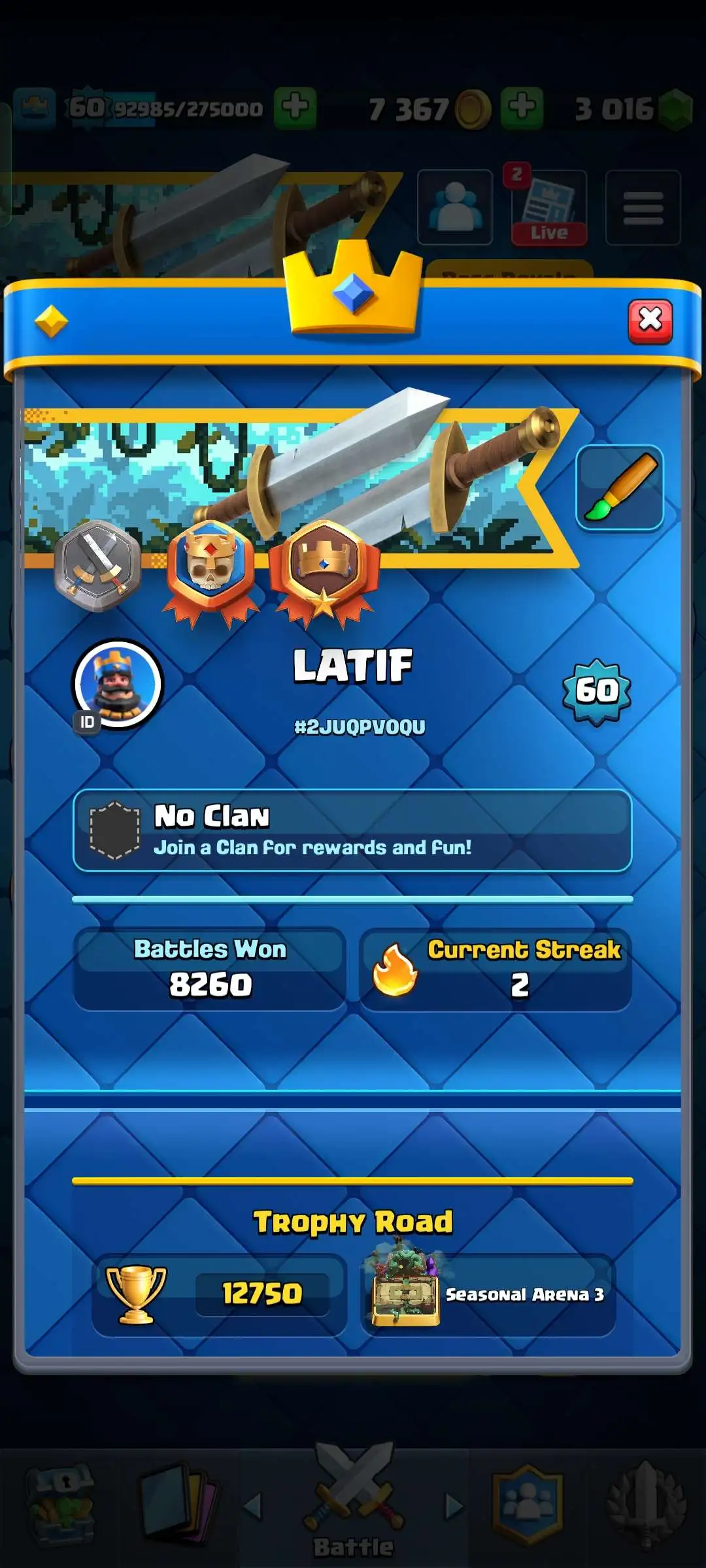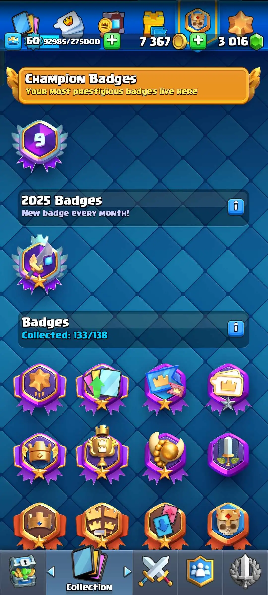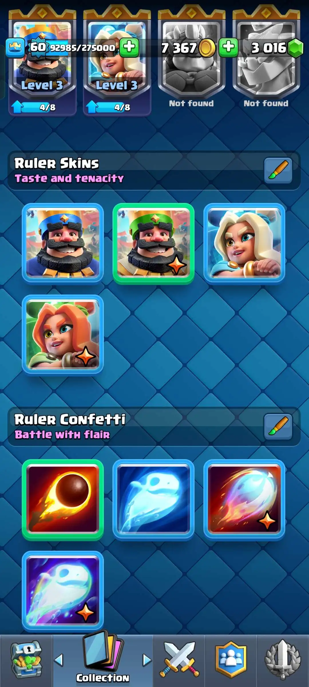 CR Lvl 60 ✨ 12750 Trophy ✨ KT 15 ✨ 24 Elite Cards ✨ 82 max cards ✨ 17 Evo Cards ✨ 122 Emotes ✨ 9 Tower skins