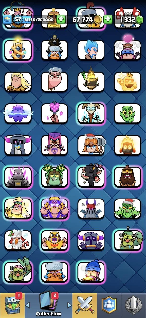 EMPEROR KING✨ KT 15 🔱 LVL 57 🏆 CUPS[9000] ✨ MAX CARDS [66] ✨ ELITE [9] ✨ EVO [4] ✨ LVL 14 [57] ✨ EMOTES [67] 🔱 CARDS [117] ✨ 10000% SAFE