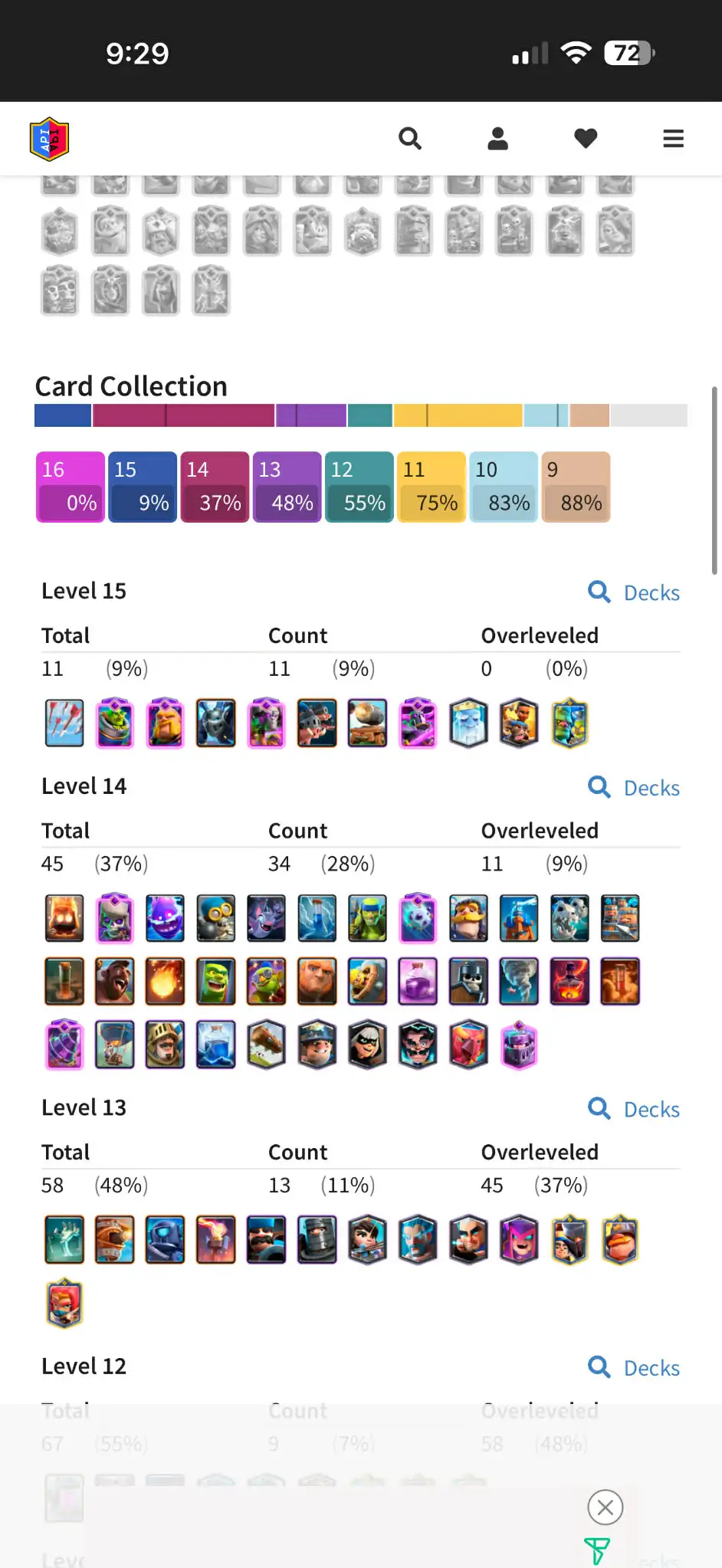 KT 15! 45x lvl 14 & 11x lvl 15 | exp lvl 57 | 9 evolution | 9000 trophy | 61 emotes | nc-yes
