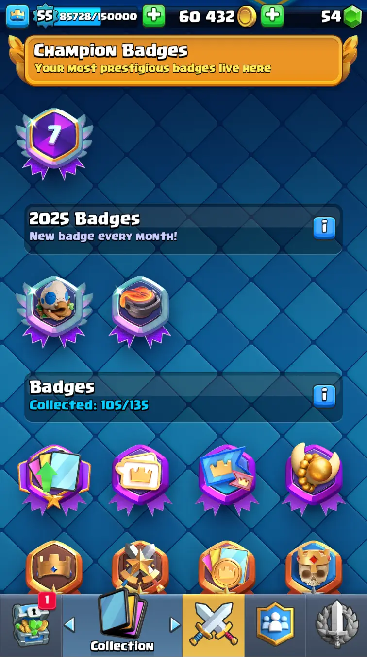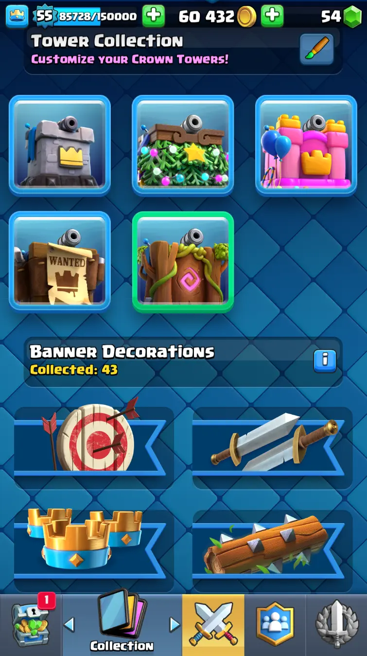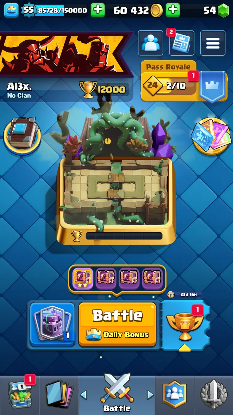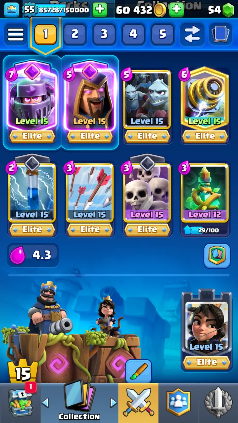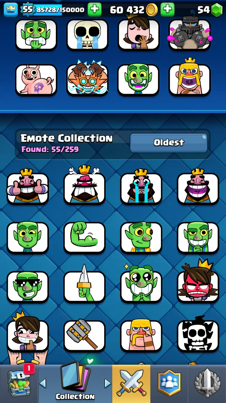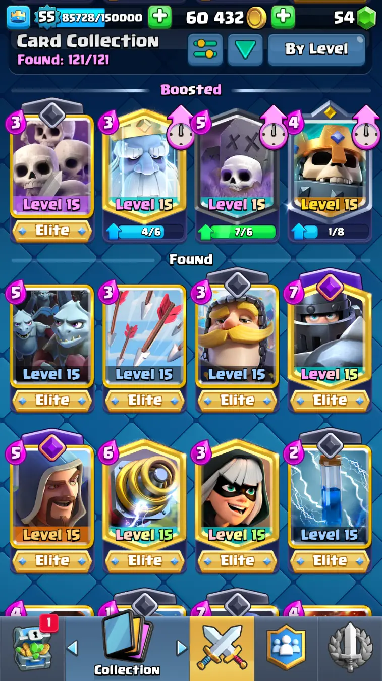 ◀️ KT 15 ▶️ LEVEL 55 🤩 12000 TROPHIES 🏆 9 ELITE CARD 🙀 12 MAX CARD 😎 5 EVO ☠️ 55 EMOTE 😍 4 SKIN 👽 121 CARDS 💳 60k GOLD 💰 54 GEMS 💎 RL69