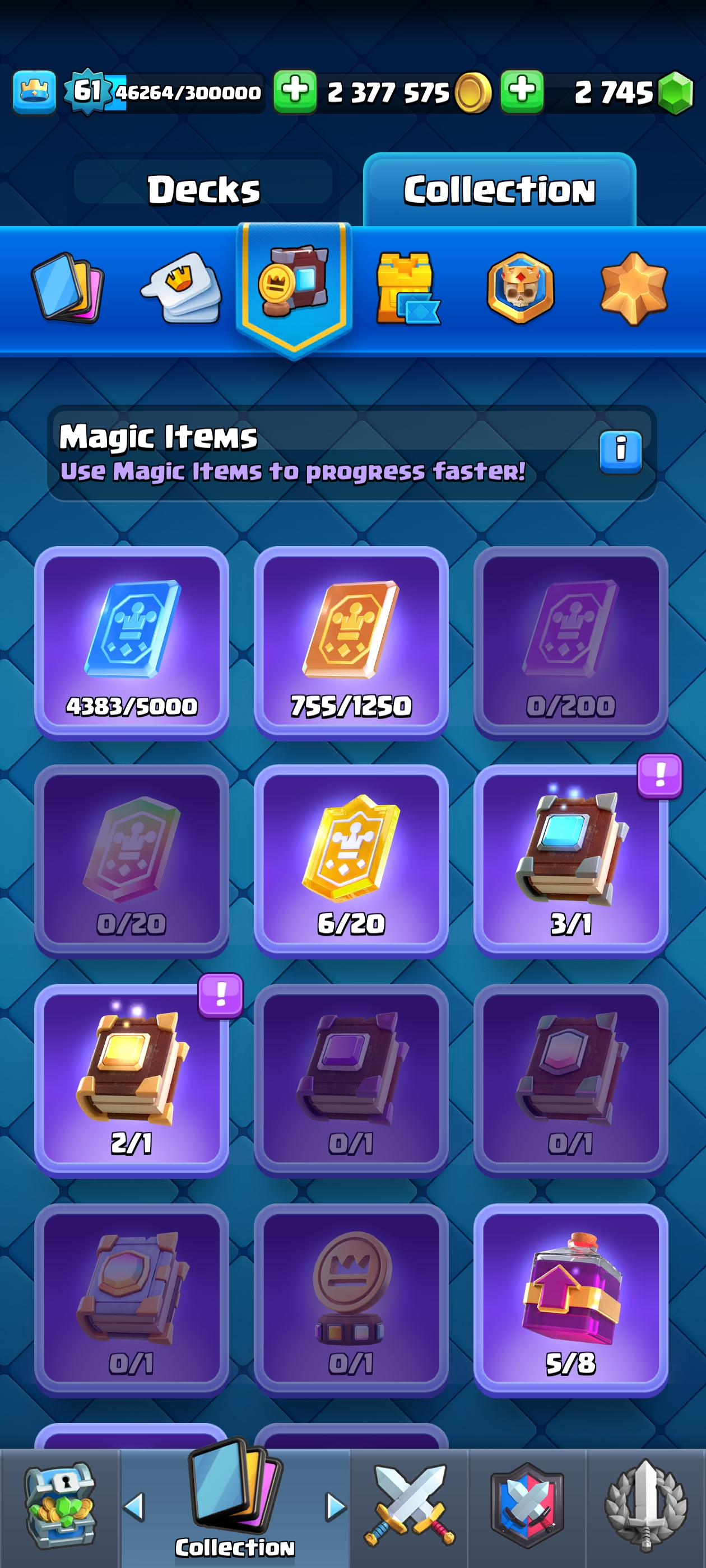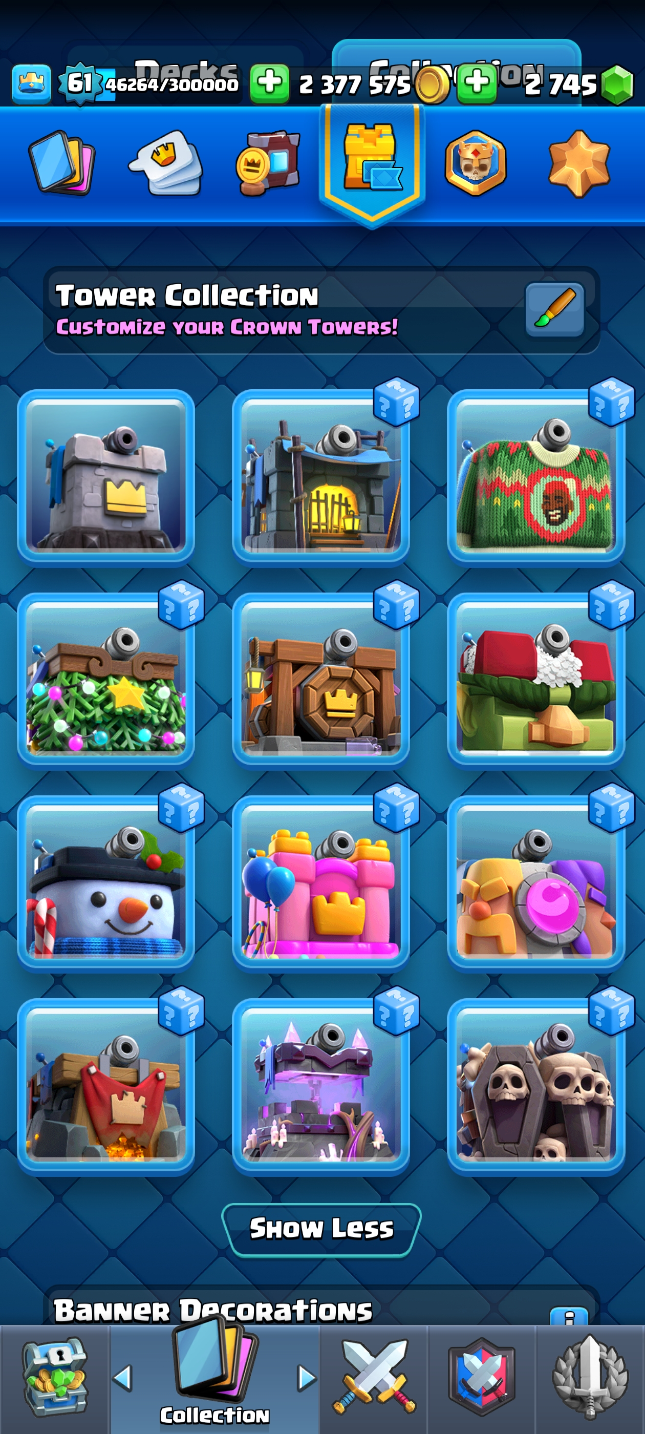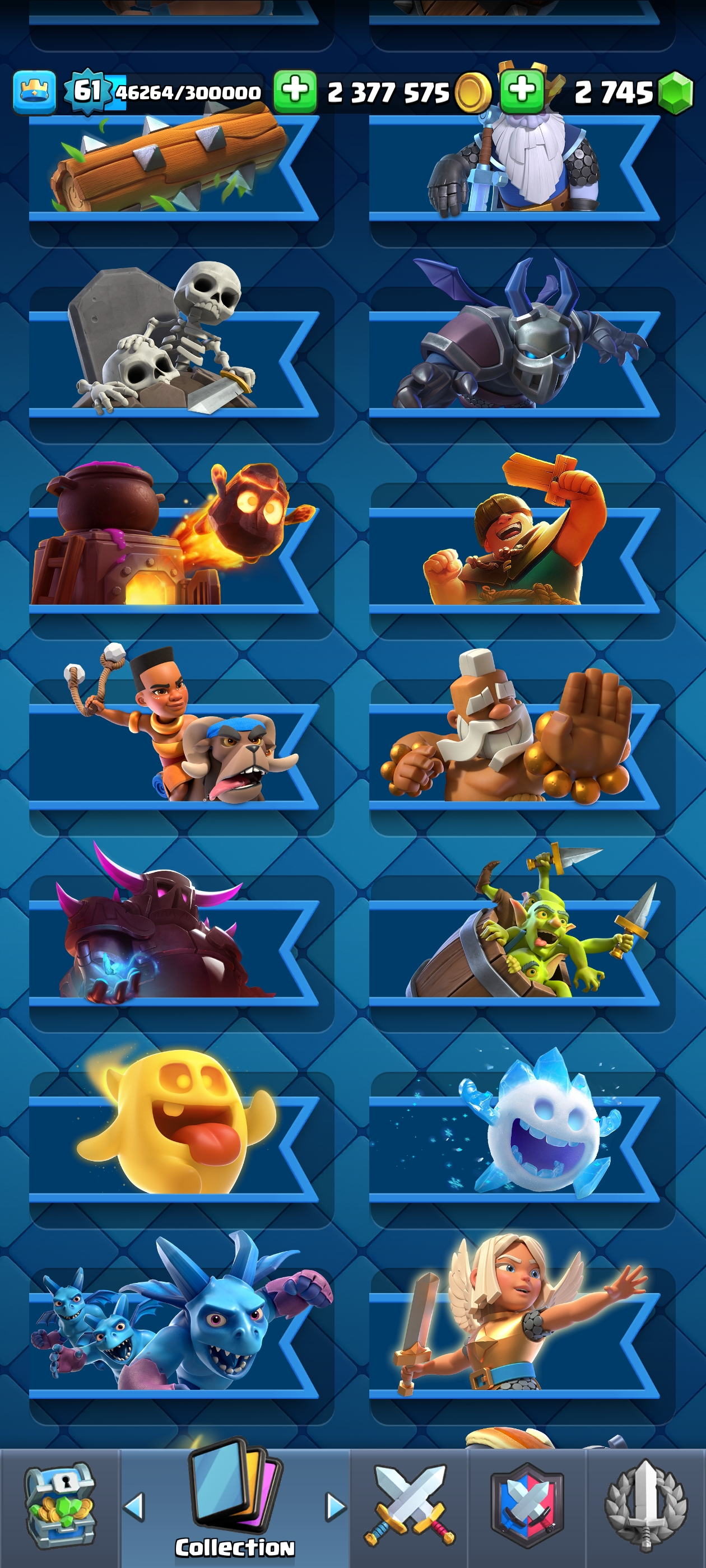 ⚡ Legendary CR Account 👑 | Fully Upgraded 💥 King Tower 15🥇Level 61🎗️2.3 Million Gold♦️| Current 15000+ Trophies 🏆 | 83 Max, 24 Elite & 23 Evo Cards 🔥 | Rare Emotes 😎 & Banners 🎌 59725 Elite Wild Card ✨Name Change Gems Available🔺YA01