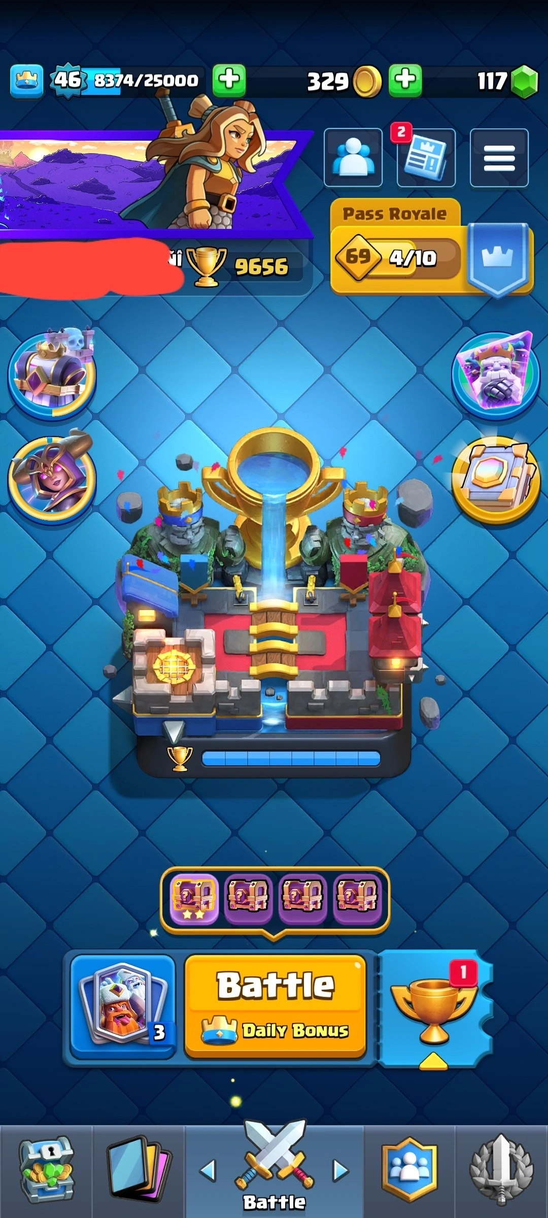 🔥 OP CHEAPEST ACCOUNT 🏆 9656 TROPHIES ⚡️ XP LEVEL 46 🏰 KING TOWER 14💰329 GOLD 💎 117 GEMS 🃏 119 CARDS ⚡️8 MAXED 🎖 ARENA 24 💥 LAGENDARY ARENA 🚀 INSTANT DELIVERY