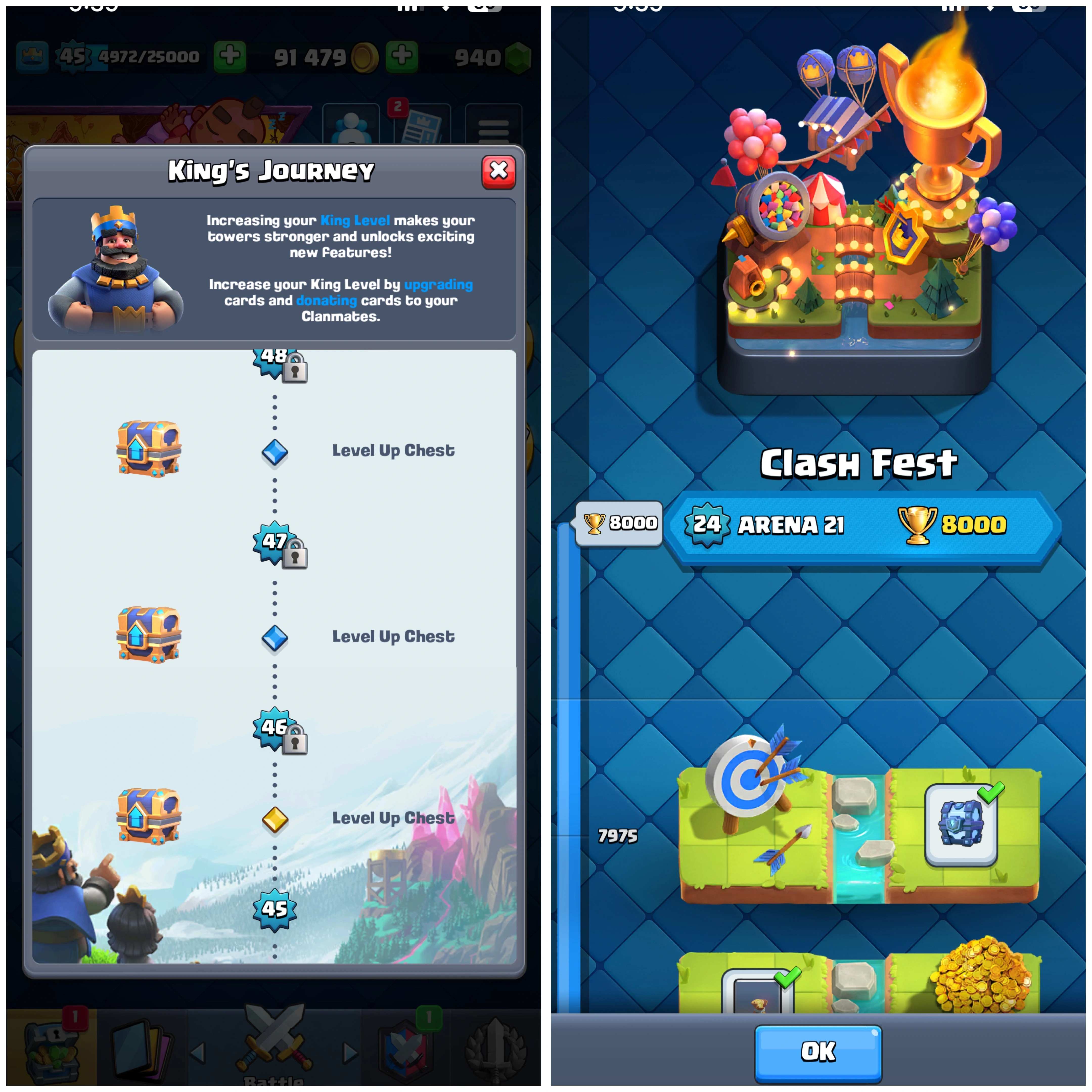 โก๏ธ Quick Deal = Instant Boost ๐ 8000 Trophies ๐| Level 45 ๐ฅ | King Tower 14 ๐ | Arena 21 โ๏ธ | Emote 35 ๐ Cards 121 ๐ Instant Delivery ๐ Lifetime Access โ