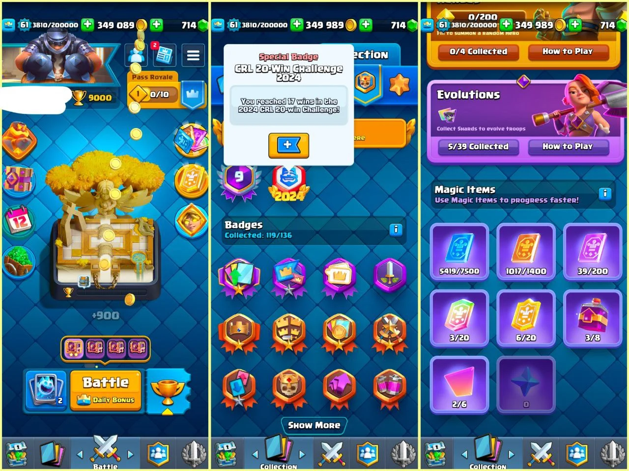 ⚔️SUPER-RARE⚔️CRL-2024 BADGE🔥KT 15 (61)⚡1x MAX⚡8x OLD MAX⚡98x CARDS LEVEL 14⚡5 EVOLVED⚡96 EMOTE⚡349K GOLD💰26 TOWER SKINS⚡ 9K TROPHY 🏆LIFETIME WARRANTY!