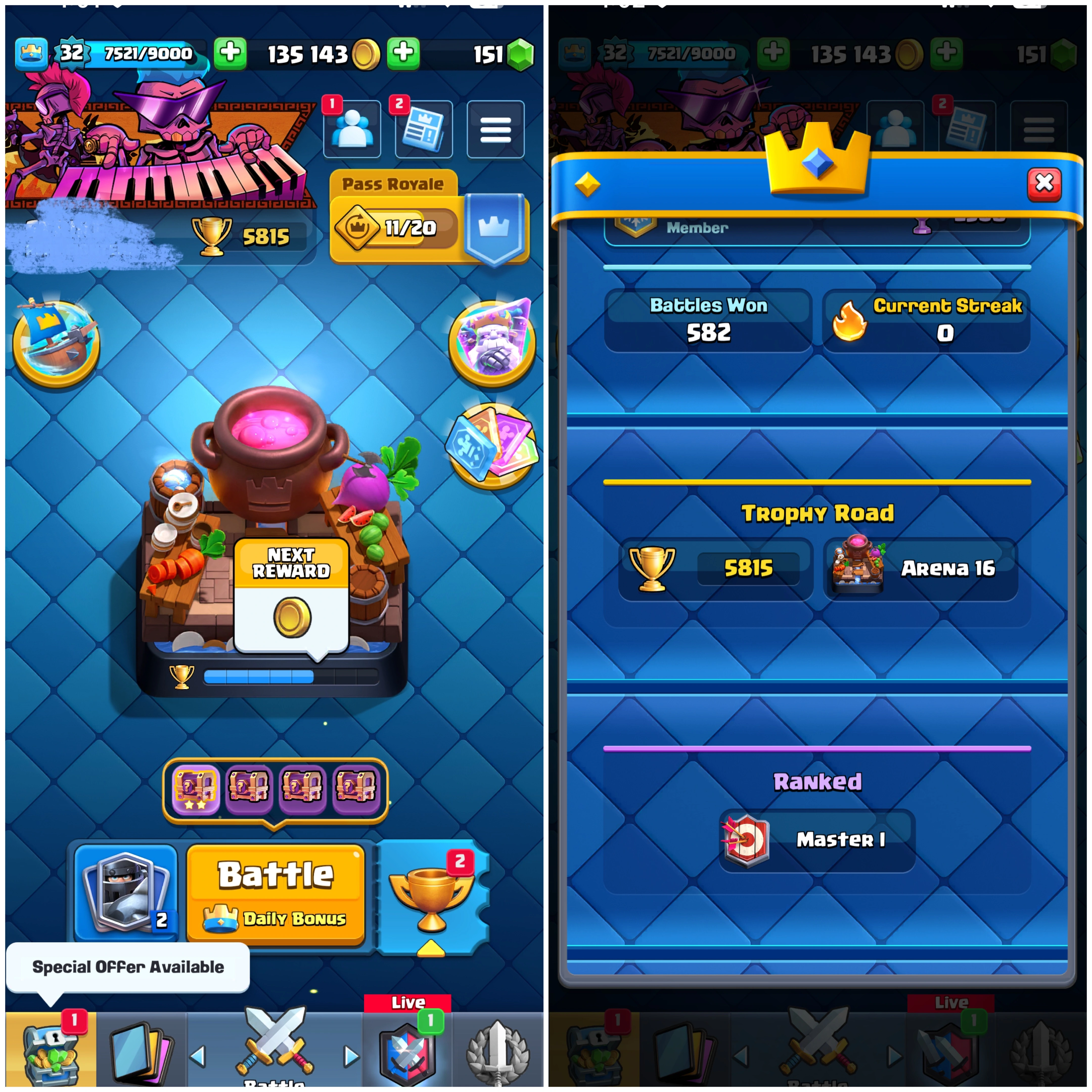 Tight Budget? ๐ 5815 Trophies ๐| Level 32 ๐ฅ | King Tower 11 ๐ | Arena 16 โ๏ธ | Emote 18 ๐ Cards 107 ๐ฅ Instant Delivery โ