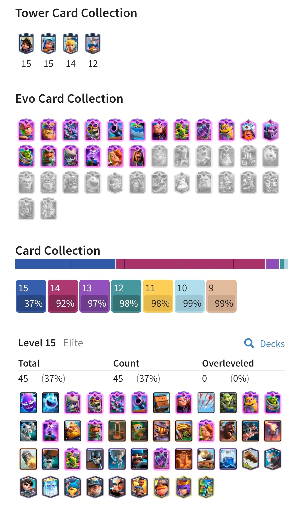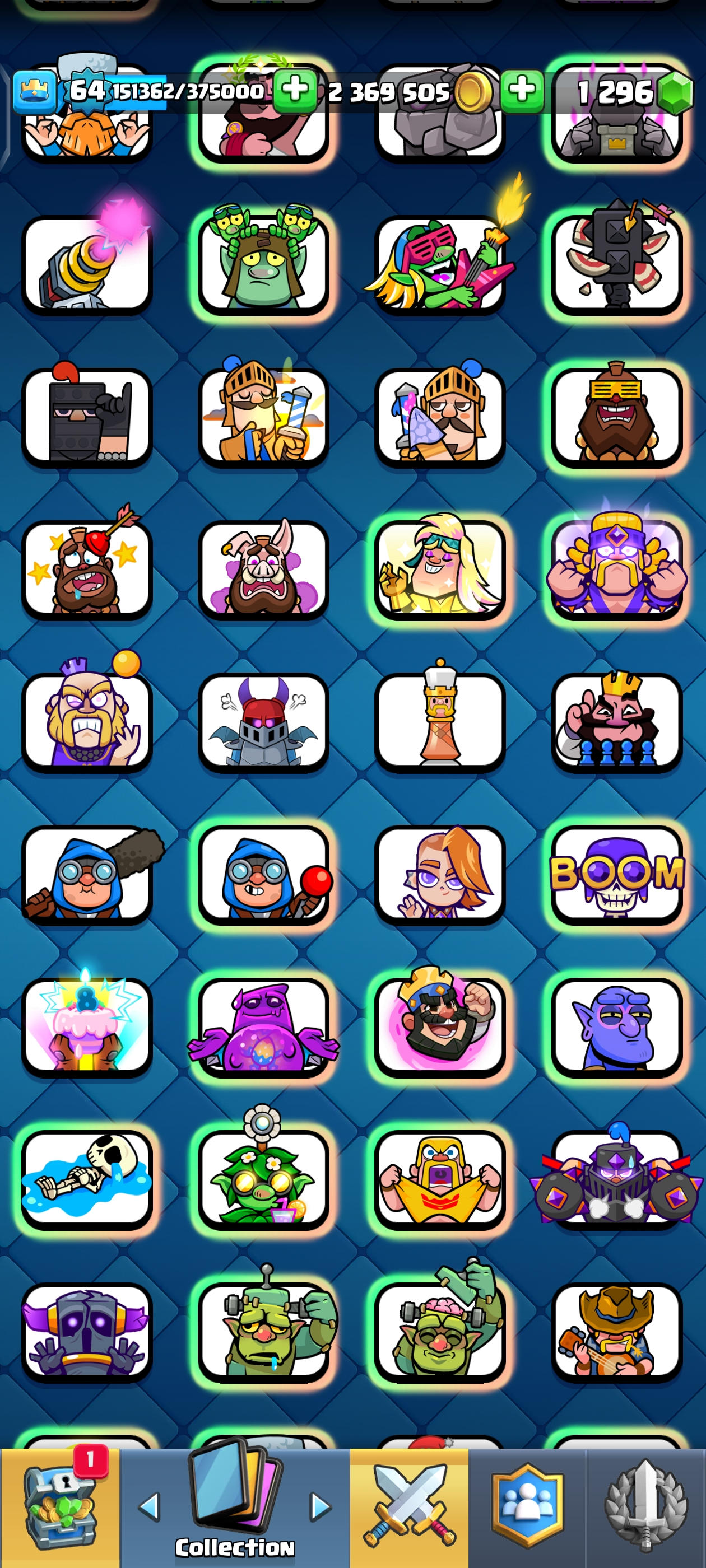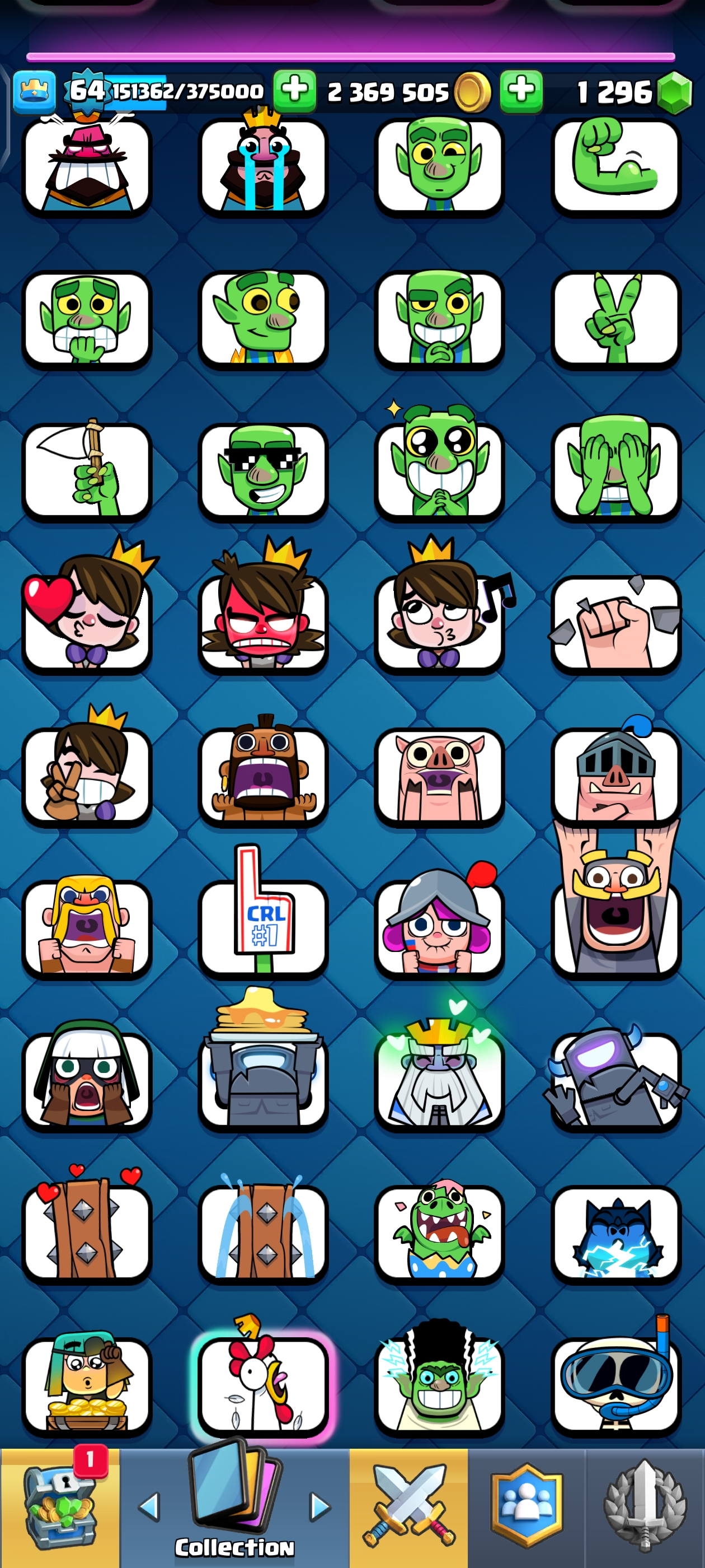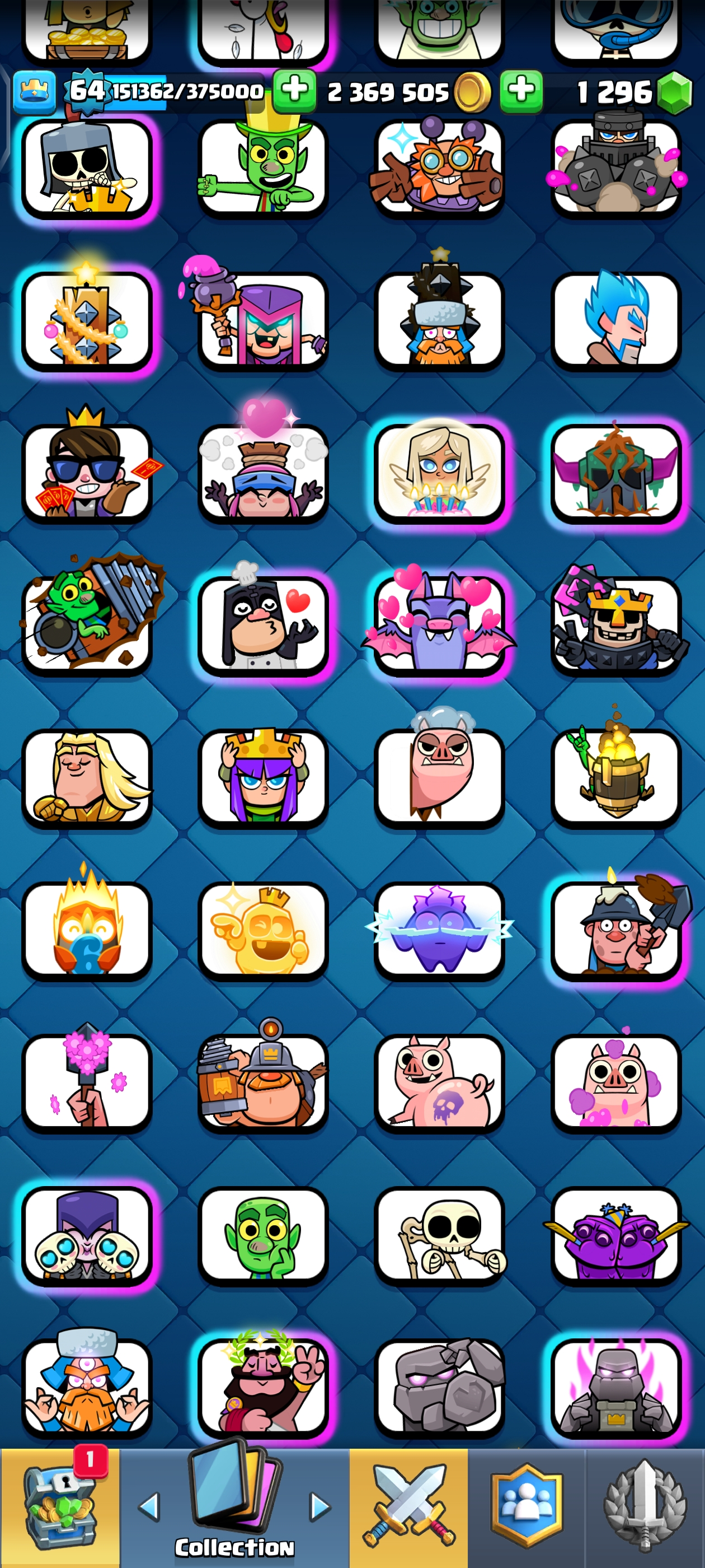 {TOP RANK ACCOUNT} ✨ 111 MAX CARDS 😈 | 18 EVO 💀 (45x Lvl 15, 111x Lvl 14) | KT: 15 👑 | Level: 64 | 10700 Trophies 🏆 | Rare emotes🤯 | 120 Cards 🃏 | 2,369,505 Gold 🪙 | 148 Emotes 💀 | NC: 1K 💎 | ⚡ Instant Delivery 🚚 | See Pics for Full Details! 🎉