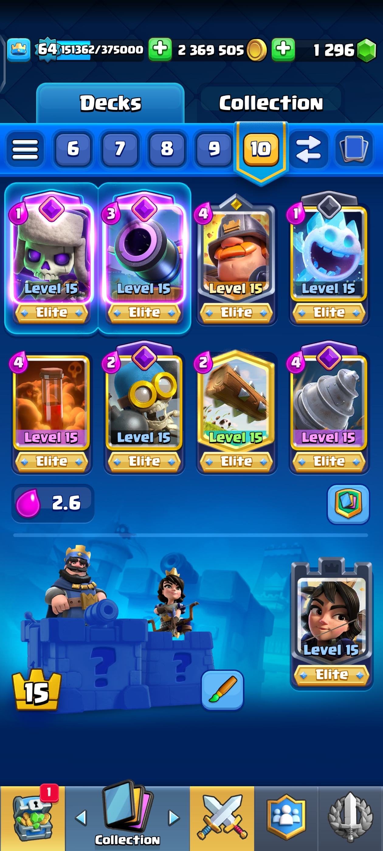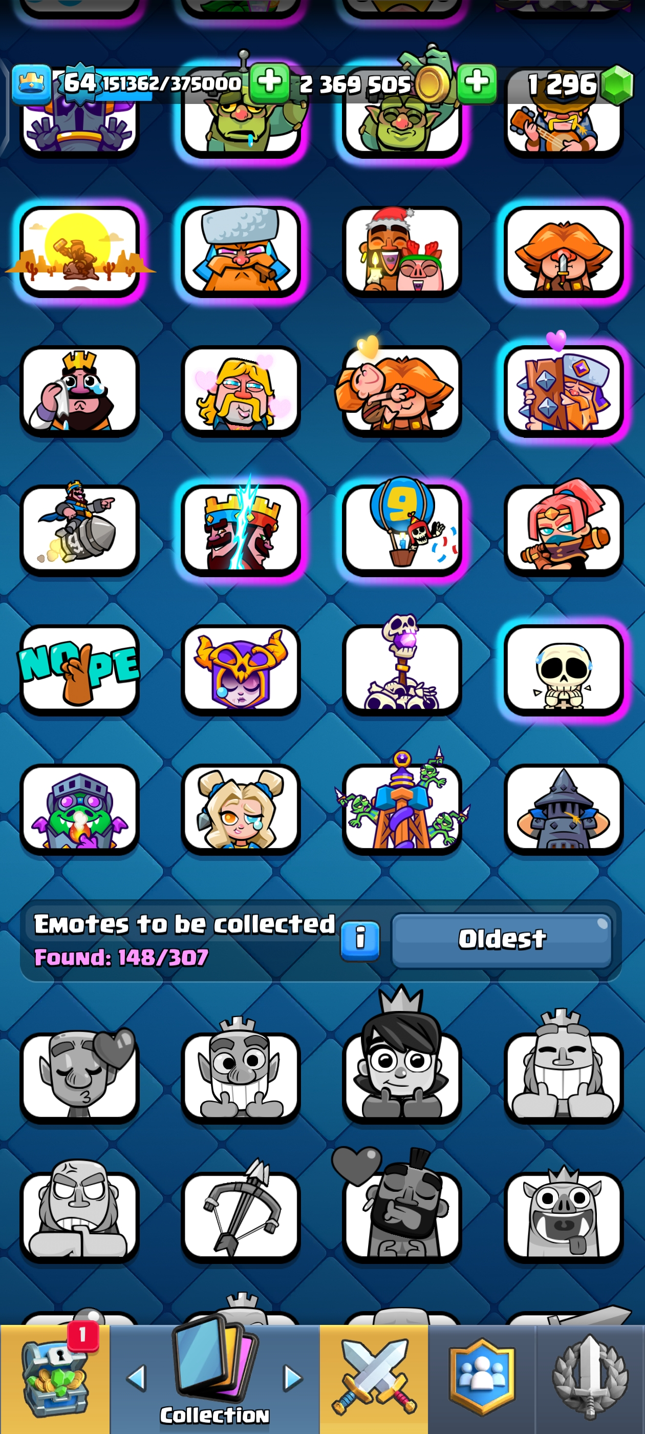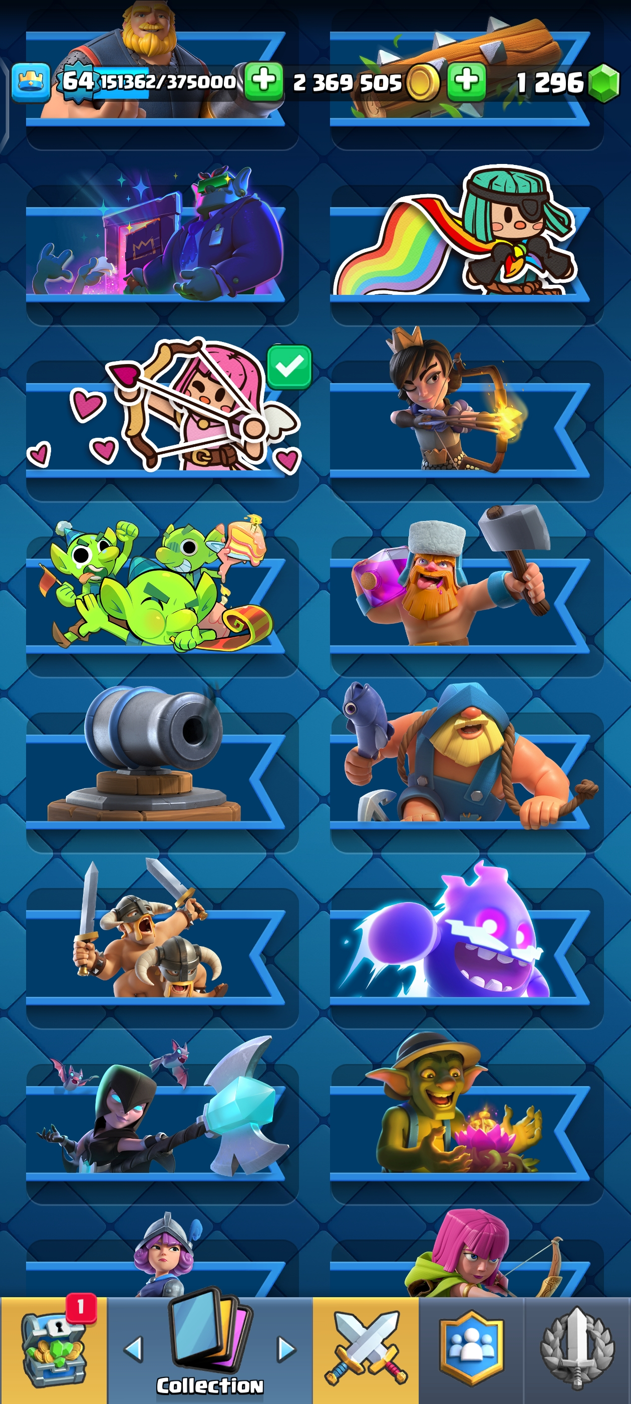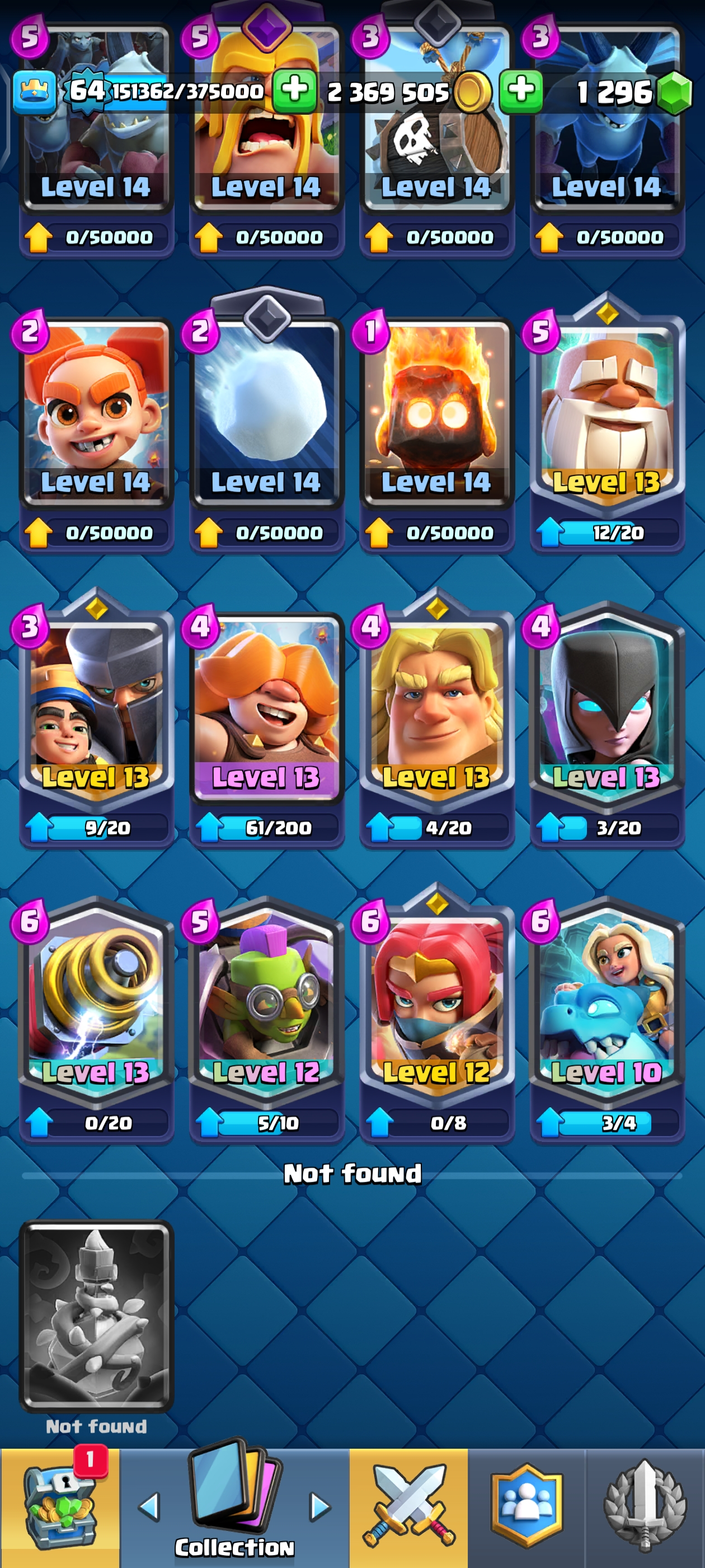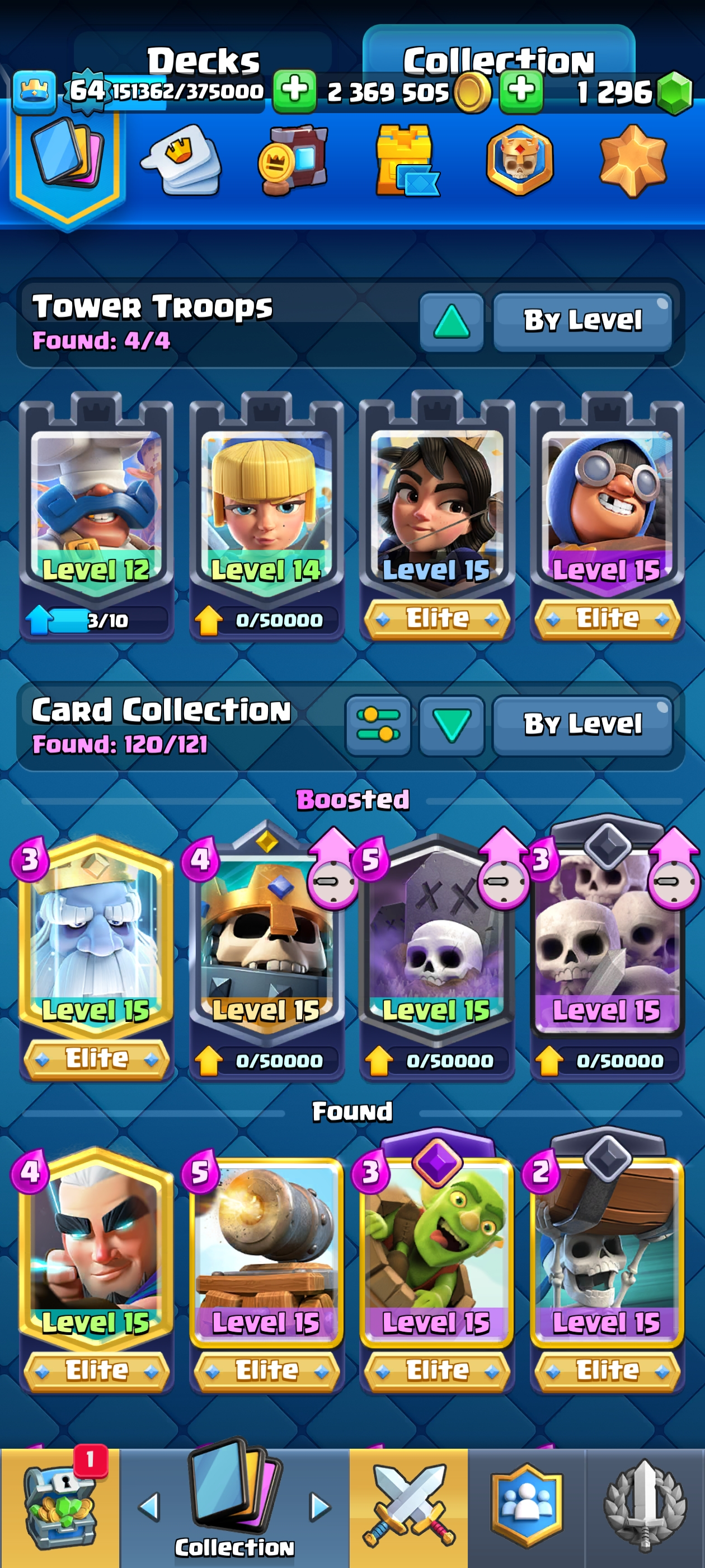 {TOP RANK ACCOUNT} ✨ 111 MAX CARDS 😈 | 18 EVO 💀 (45x Lvl 15, 111x Lvl 14) | KT: 15 👑 | Level: 64 | 10700 Trophies 🏆 | Rare emotes🤯 | 120 Cards 🃏 | 2,369,505 Gold 🪙 | 148 Emotes 💀 | NC: 1K 💎 | ⚡ Instant Delivery 🚚 | See Pics for Full Details! 🎉