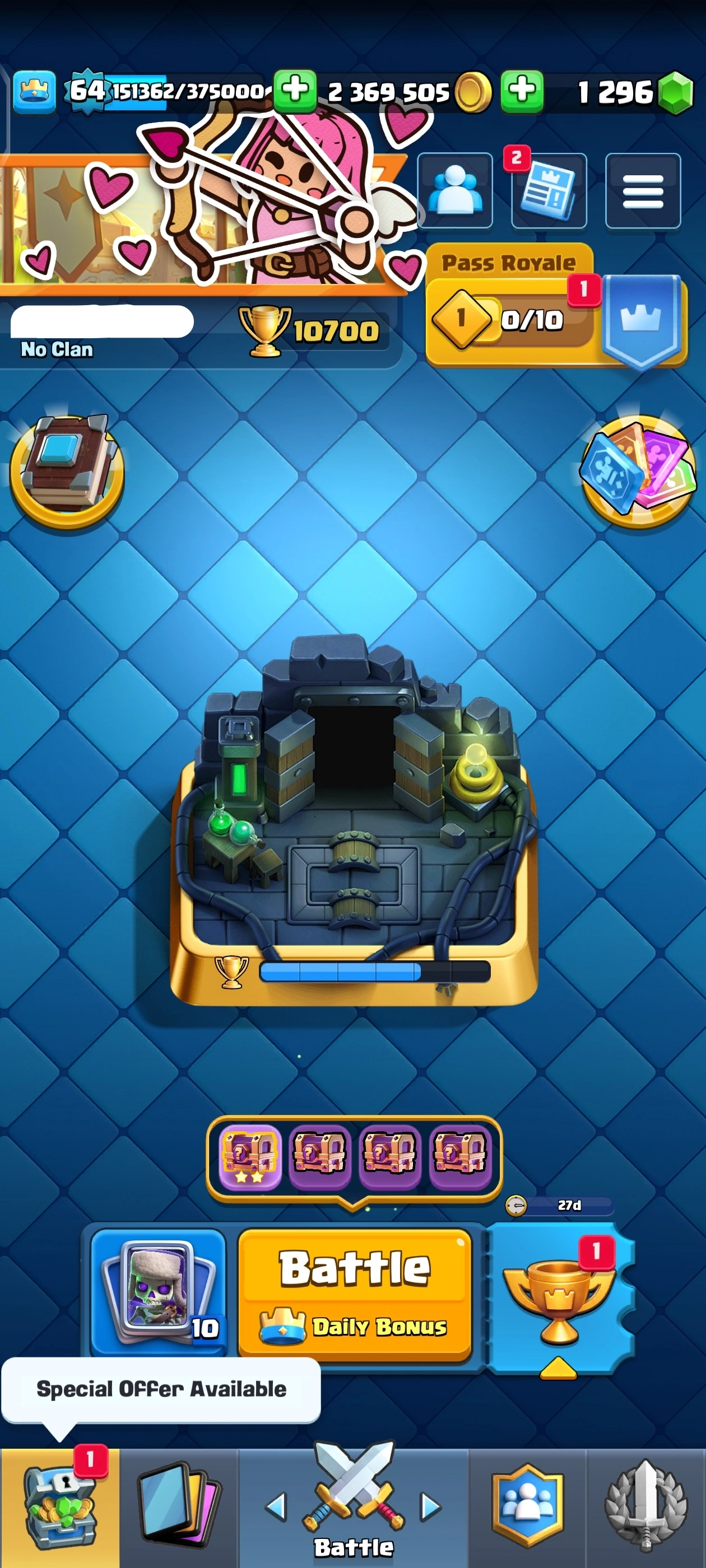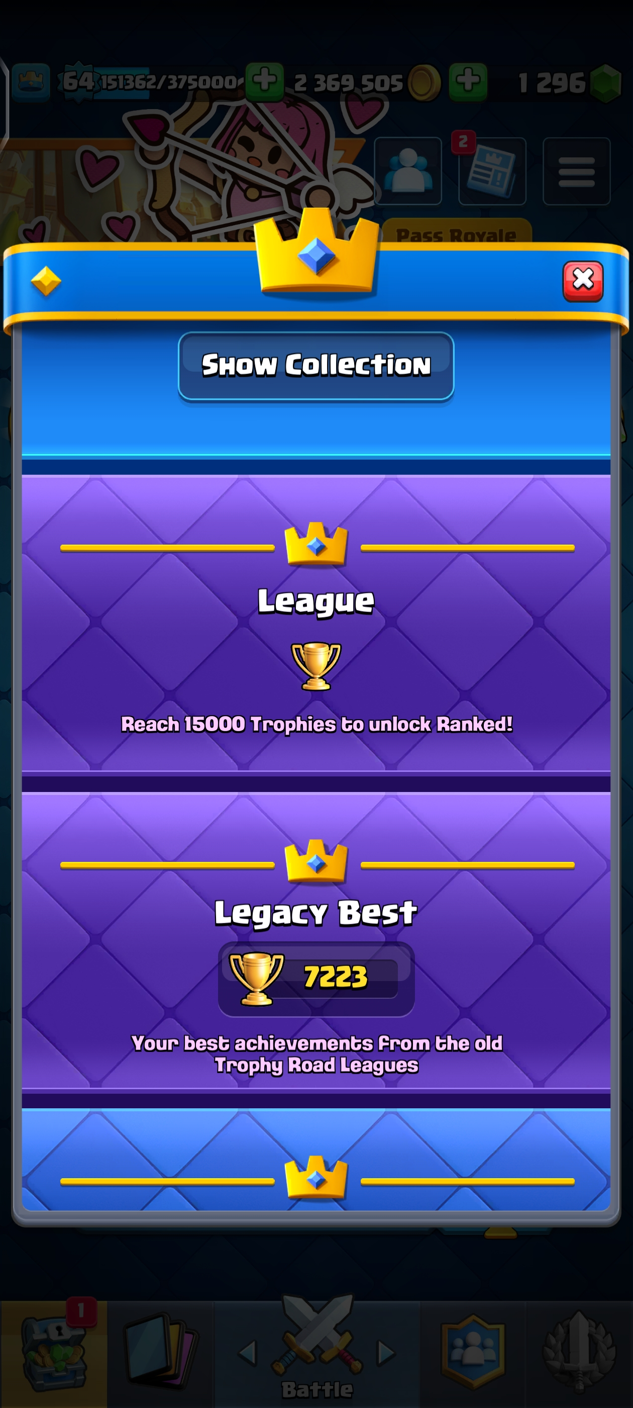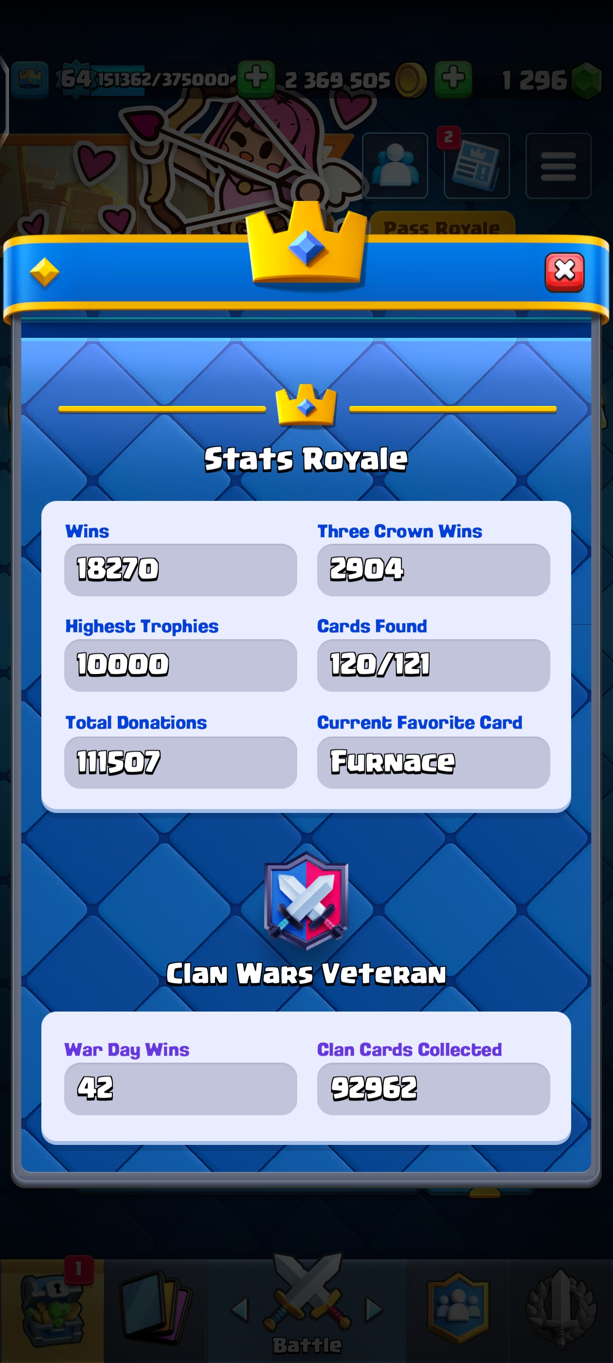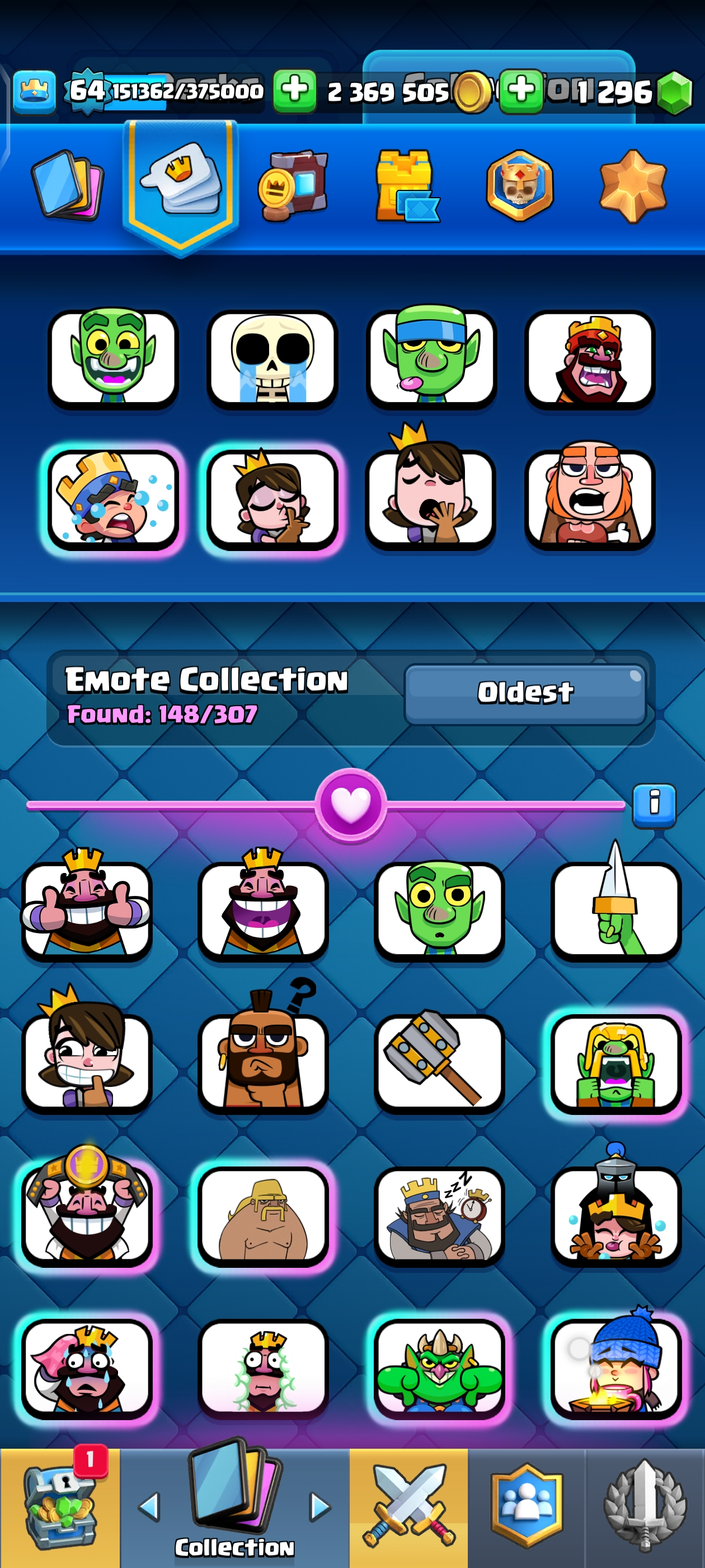 {TOP RANK ACCOUNT} ✨ 111 MAX CARDS 😈 | 18 EVO 💀 (45x Lvl 15, 111x Lvl 14) | KT: 15 👑 | Level: 64 | 10700 Trophies 🏆 | Rare emotes🤯 | 120 Cards 🃏 | 2,369,505 Gold 🪙 | 148 Emotes 💀 | NC: 1K 💎 | ⚡ Instant Delivery 🚚 | See Pics for Full Details! 🎉