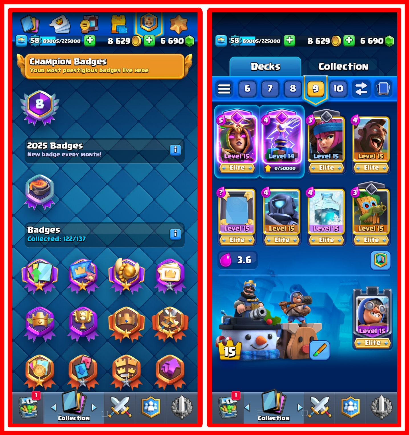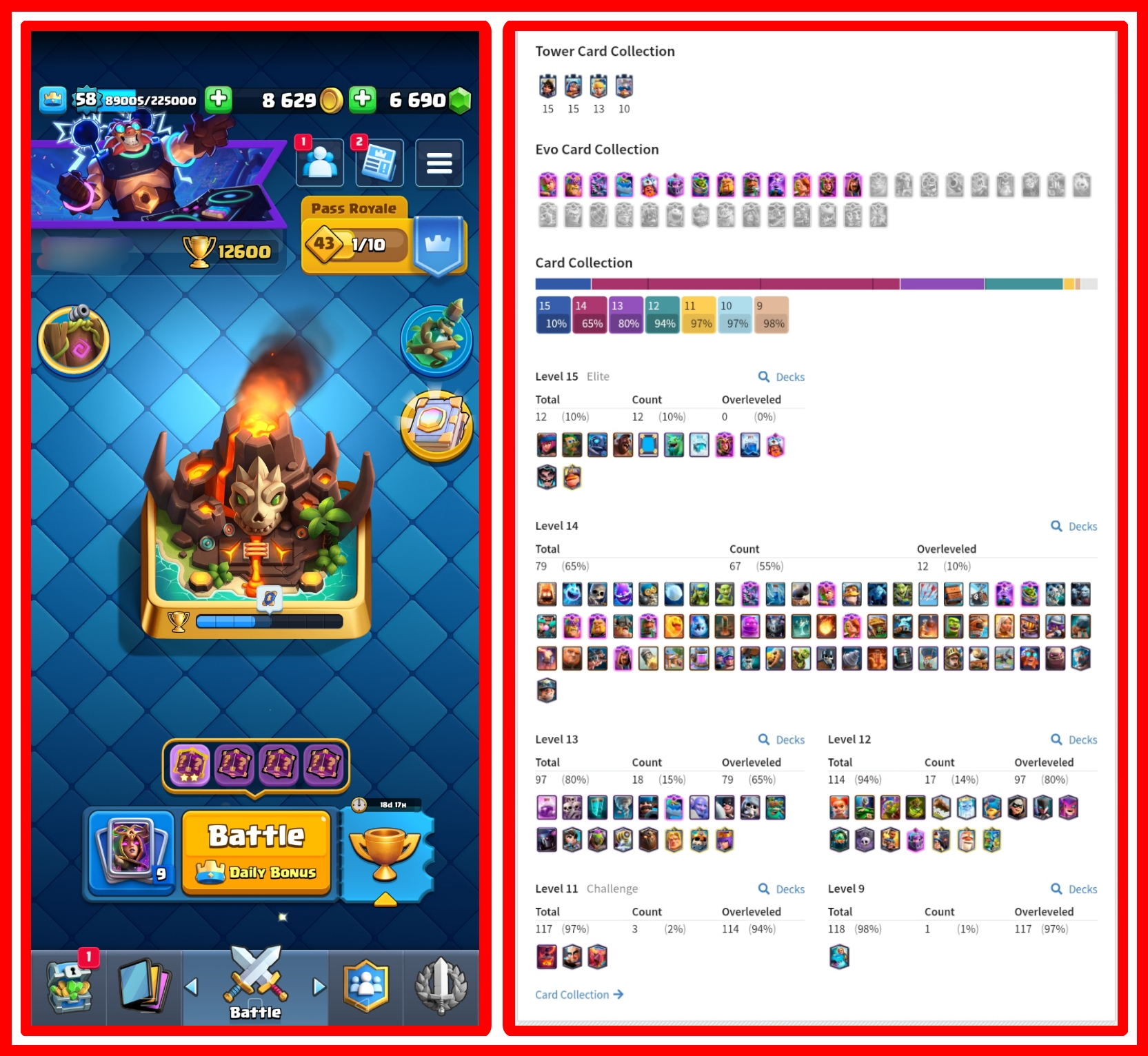 ULTRA STACKED💀79 MAX CARDS✨12 EVOLUTION CARDS✌️10 ELITE CARDS😍LEVEL 58🚀9500 TROPHIES🏆ARENA LEVEL 24😍KT LEVEL 15☠️NAME CHANGE 500 GEMS💎CHEAP PRICE 💸INSTANT DELIVERY☑️ ANDROID & IOS☑️#FZ