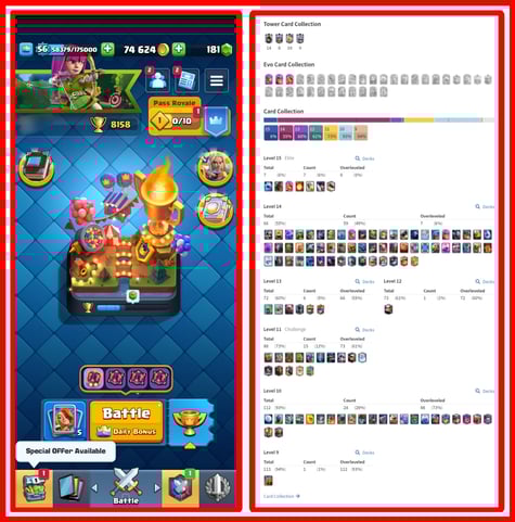 [HIGH EVO CARDS] ✨75 MAX CARDS😱14 EVOLUTION CARDS🍀11 ELITE CARDS😍LEVEL 57 🚀9800 TROPHIES🏆ARENA LEVEL 23 😍 KT LEVEL 15 ☠️🎁 FREE NAME CHANGE 💎☠️ CHEAP PRICE 💸 INSTANT DELIVERY ☑️💯 ANDROID & IOS ☑️🤝