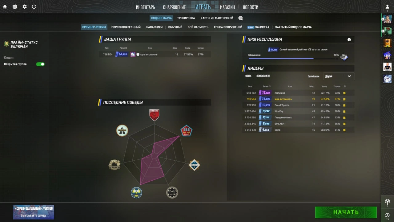 CB277 | CS2 Prime+4 medals+14500 cs rating+Faceit