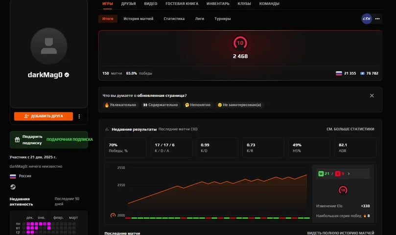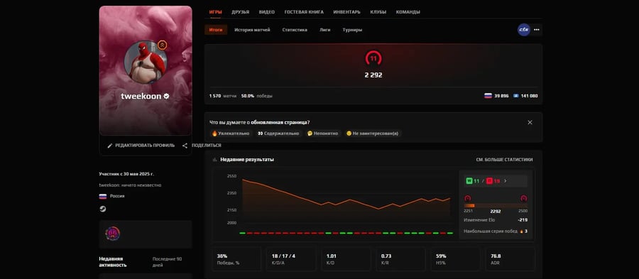 FACEIT 10 LVL HLTV PROFILE 3550 ELO, 2666 MATCHES 2016 REG VERIF NATIVE MAIL 12 MEDALS