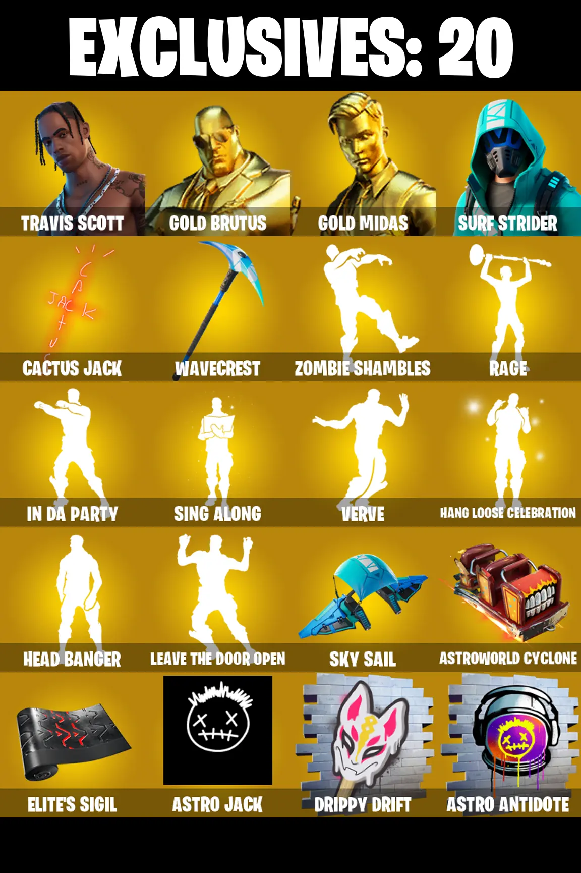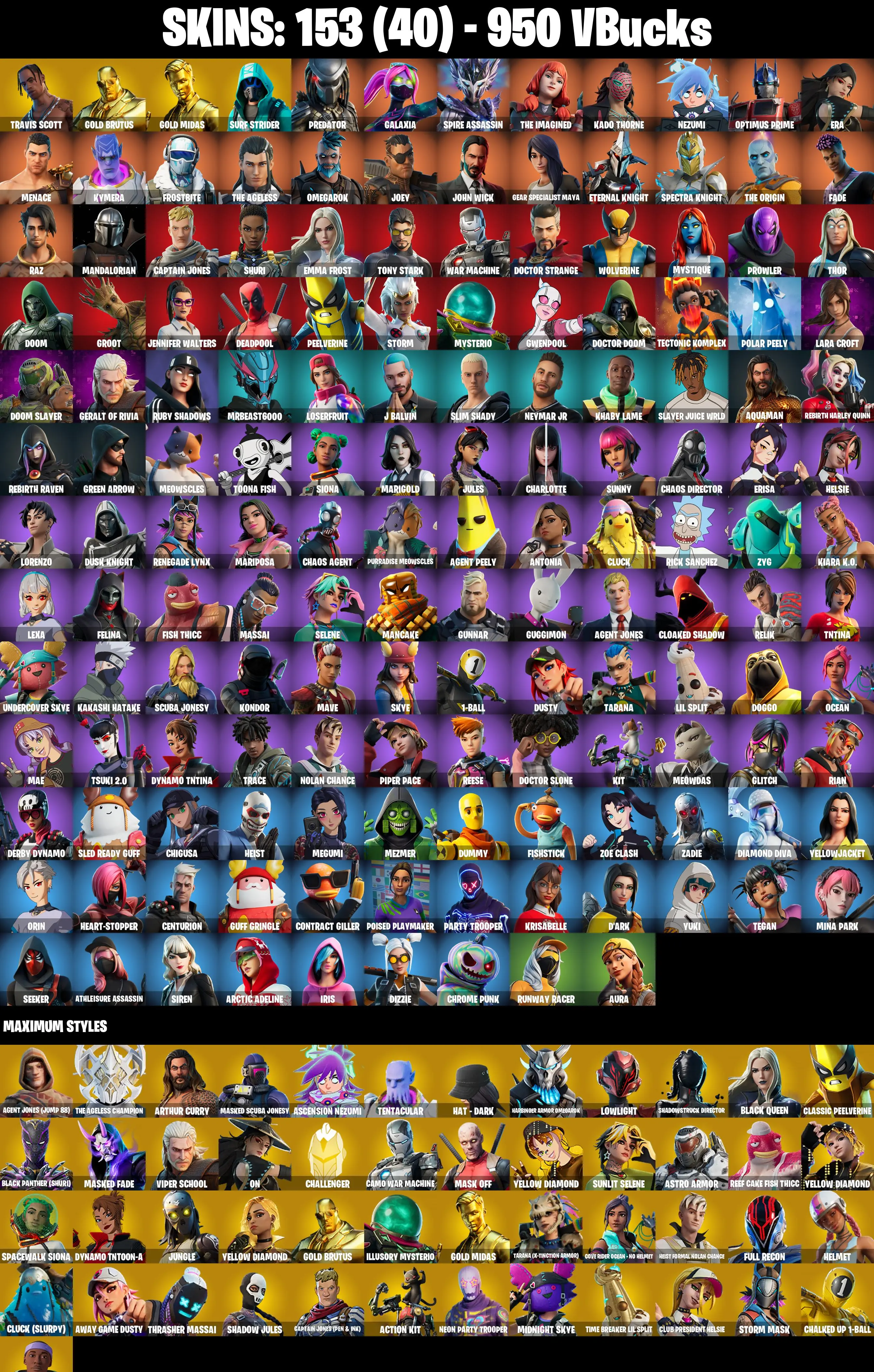 [153 SKINS] ⭐️ Travis Scott ⭐️ Gold Midas ⭐️ Gold Brutus ⭐️ Surf Strider ⭐️ The Origin ⭐️ Spire Assassin ⭐️ Galaxia ⭐️ 950 VB ⭐️ (PC/PSN/XBOX)