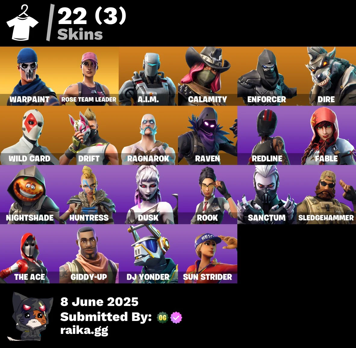 22 Skins 💎 OG STW Deluxe Edition 💎 PSN PC XBOX 💎 A.I.M. 💎 Calamity 💎 Enforcer 💎 Dire 💎 Wild Card 💎 Drift 💎 Ragnarok 💎 Raven 💎 Redline 💎 Fable 💎 Nightshade 💎 Huntress 💎 Dusk