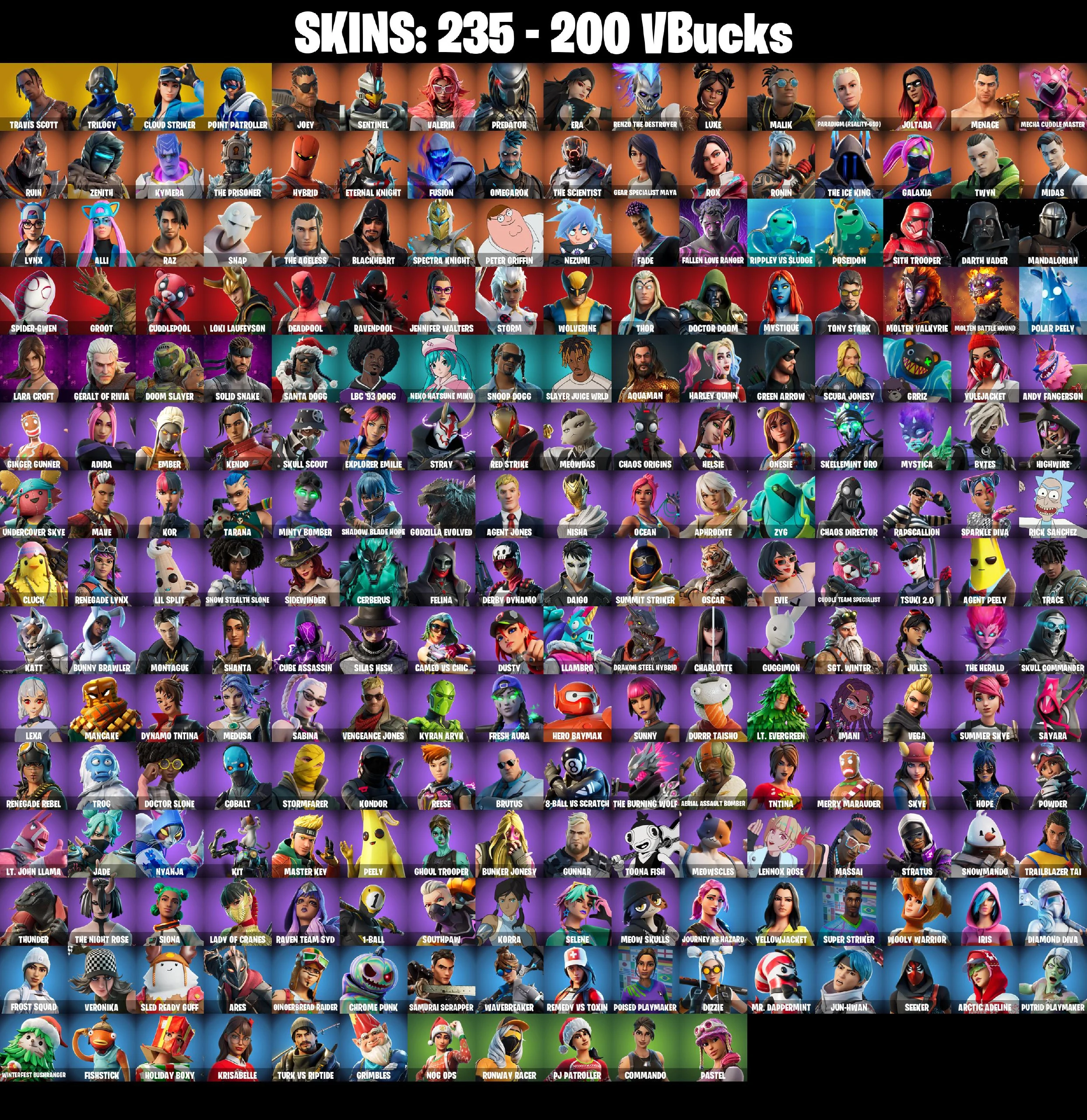 🎆235 SKINS ⚡️PC/XBOX⚡️ TRAVIS SCOTT 👑 TRILOGY 👑 CLOUD STRIKER 👑 POINT PATROLLER 👑 JOEY 👑 SENTINEL 👑 VALERIA 👑 PREDATOR 👑 ERA ⚡️ 200 VB #M625