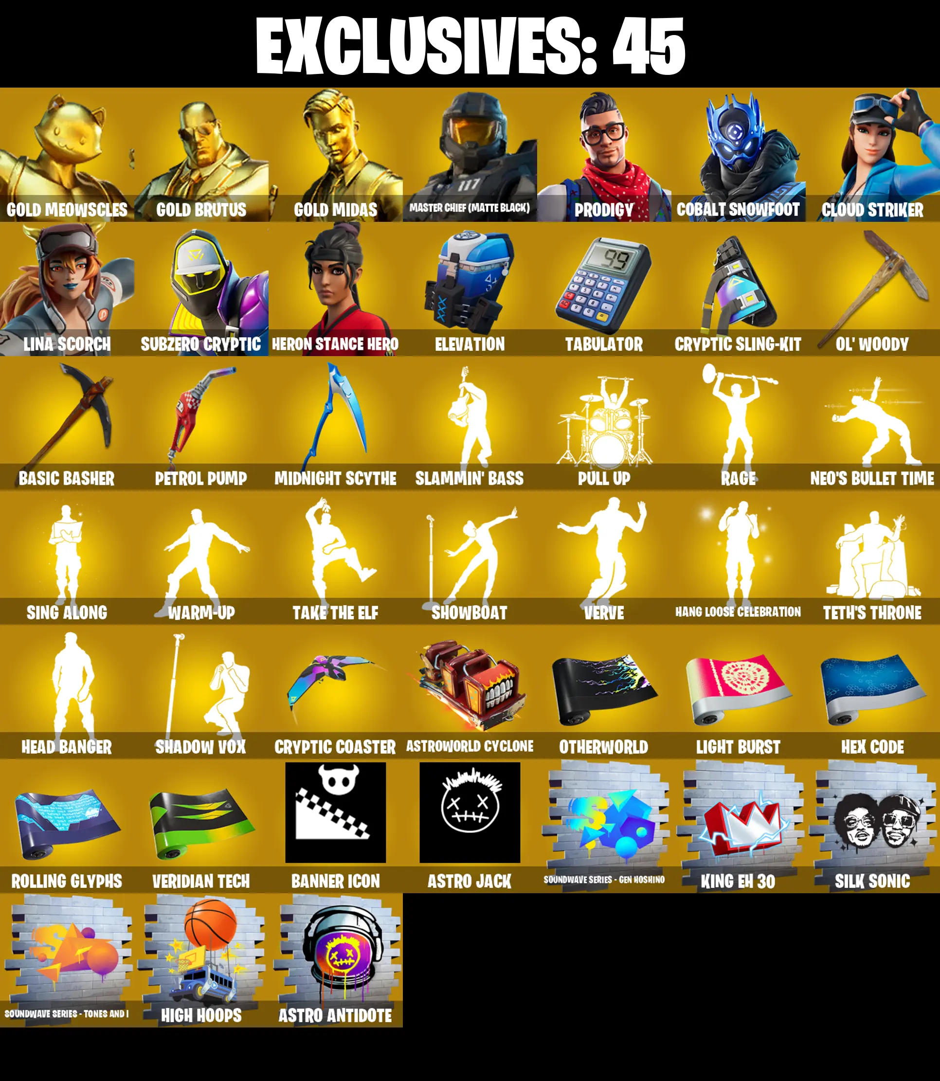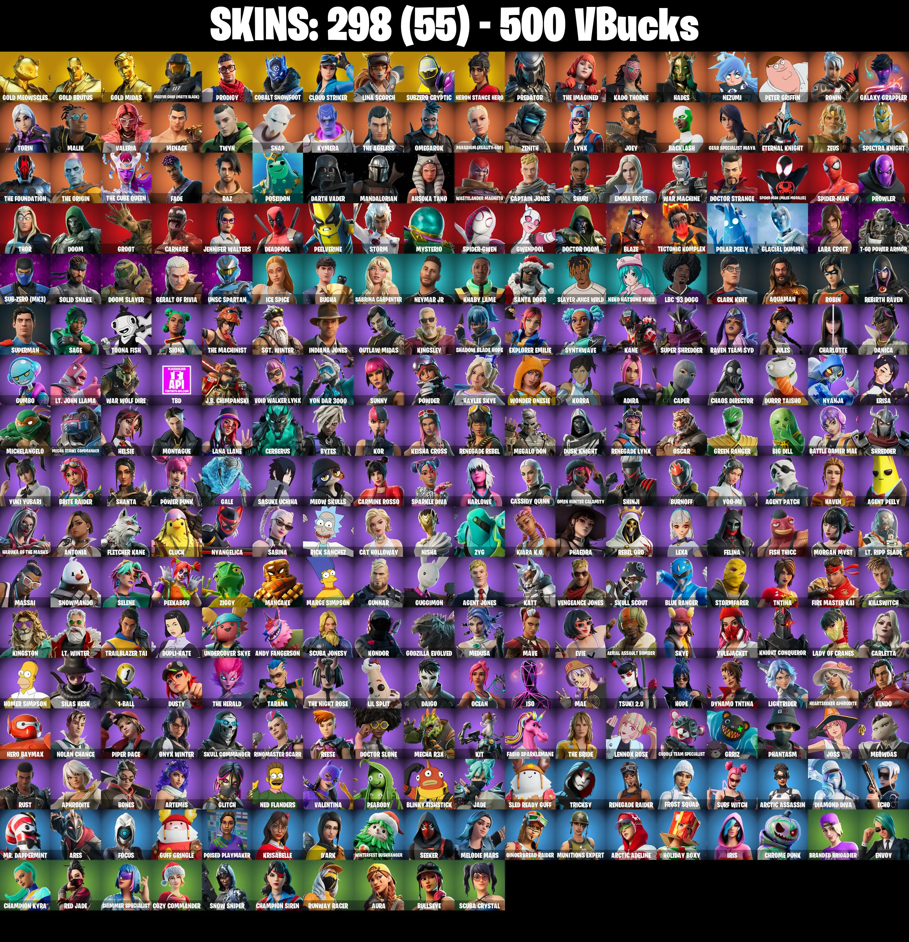 298 SKINS ✨ Renegade Raider ✨ Gold Meowscles ✨ Gold Brutus ✨ Gold Midas ✨ Master Chief (Matte Black) ✨ Prodigy ✨ Cobalt Snowfoot ✨ Cloud Striker ✨ 500 VB (PC/PSN/XBOX)