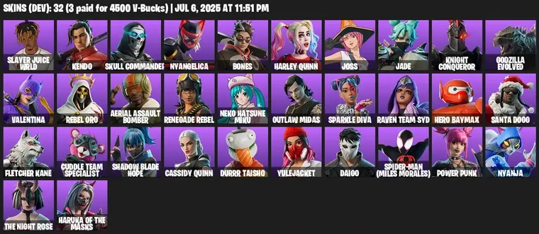 【32 SKINS】Harley Quinn ✴️ Spider-Man (Miles Morales) ✴️ Slayer Juice WRLD ✴️ Neko Hatsune Miku ✴️ 500 VB ✴️ XBOX/PSN/PC FULL ACCESS