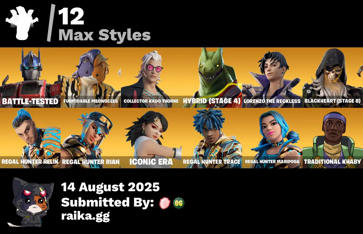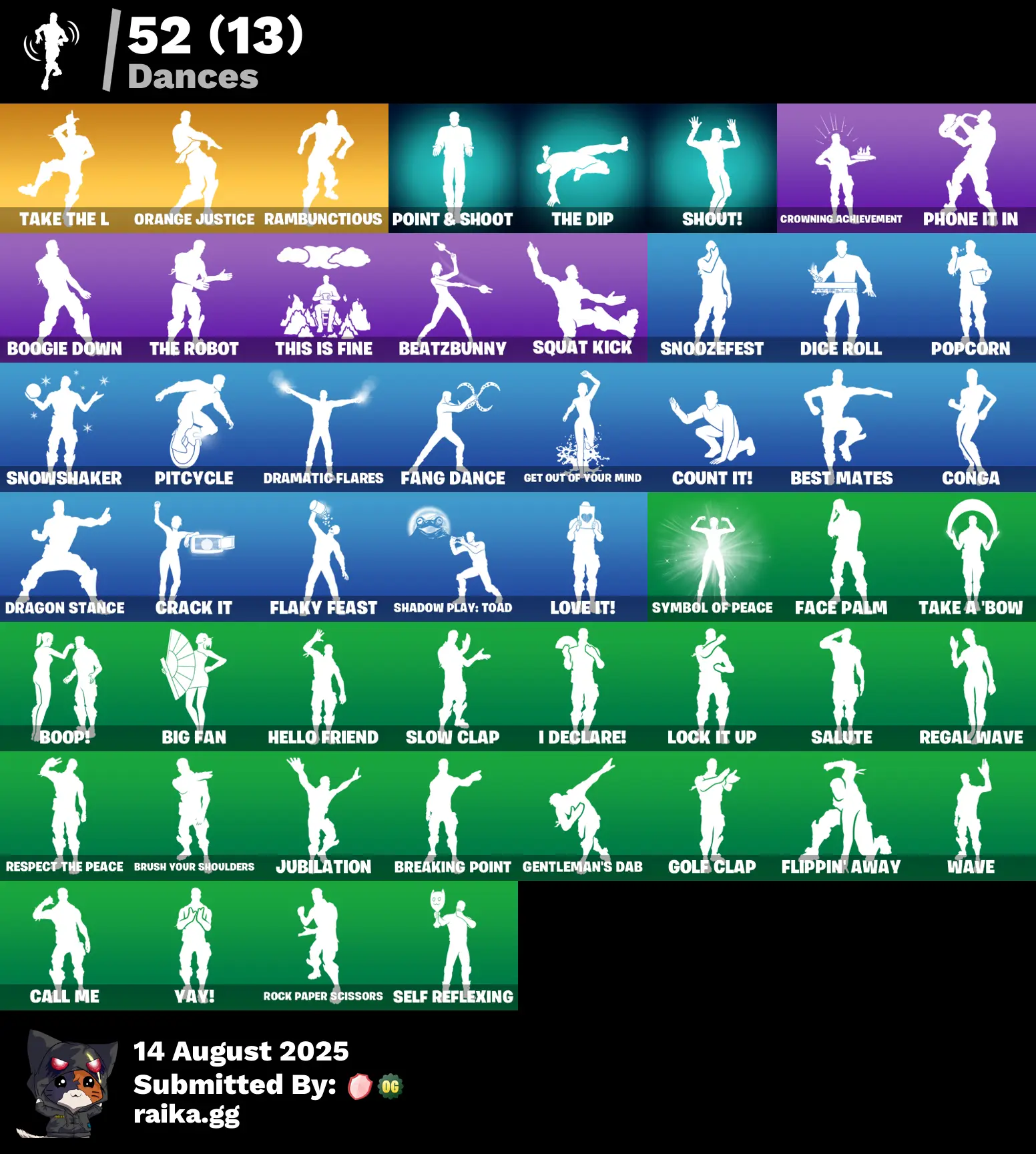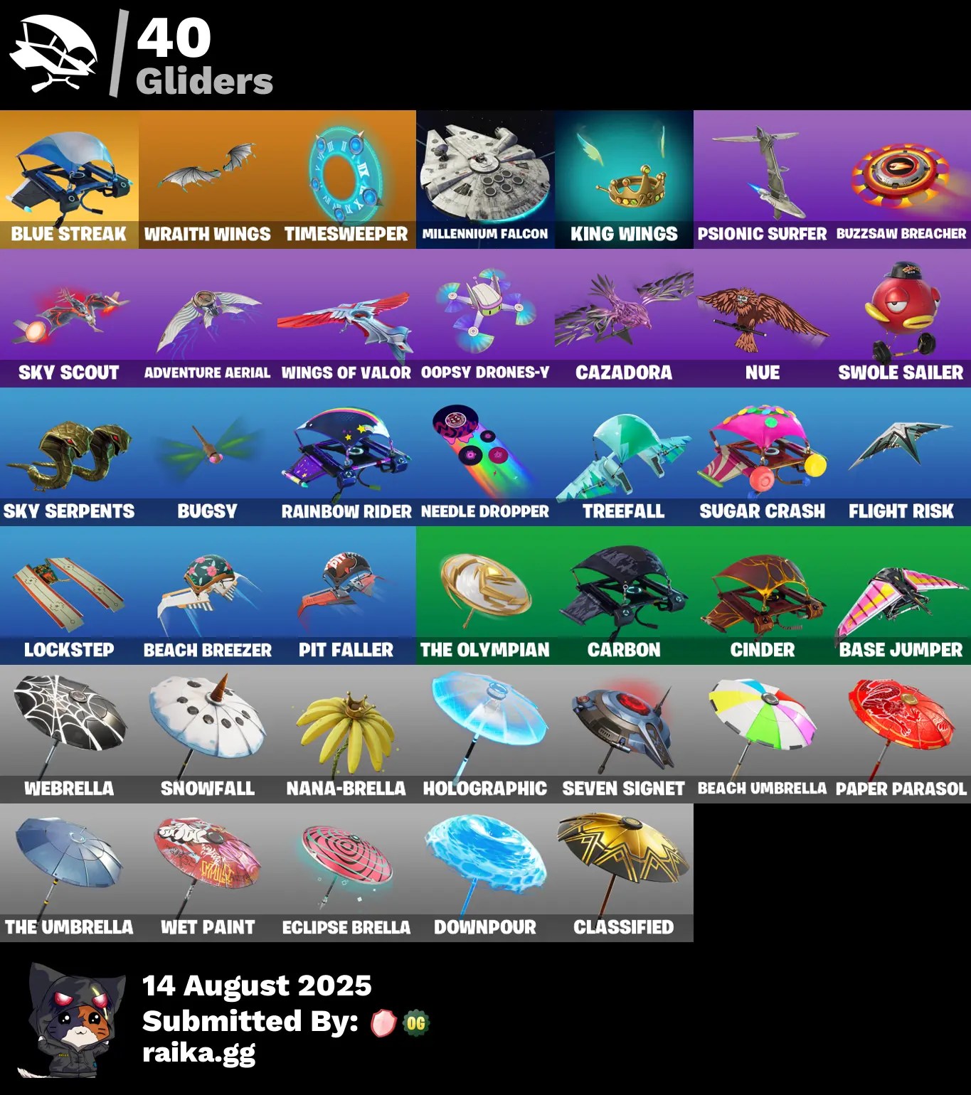 34 skins | The Reaper❄️Take The L❄️Elite Agent❄️Orange Justice❄️The Dip❄️Gentleman's Dab❄️Oopsy Drones-y❄️Beach Breezer❄️Artifact Axe❄️Flippin' Away❄️Snowfall❄️Birthday Basher❄️Dragon's Claw❄️Gale Force❄️Fang Dance❄️Timesweeper❄️Optimus Prime❄️Relik D4291