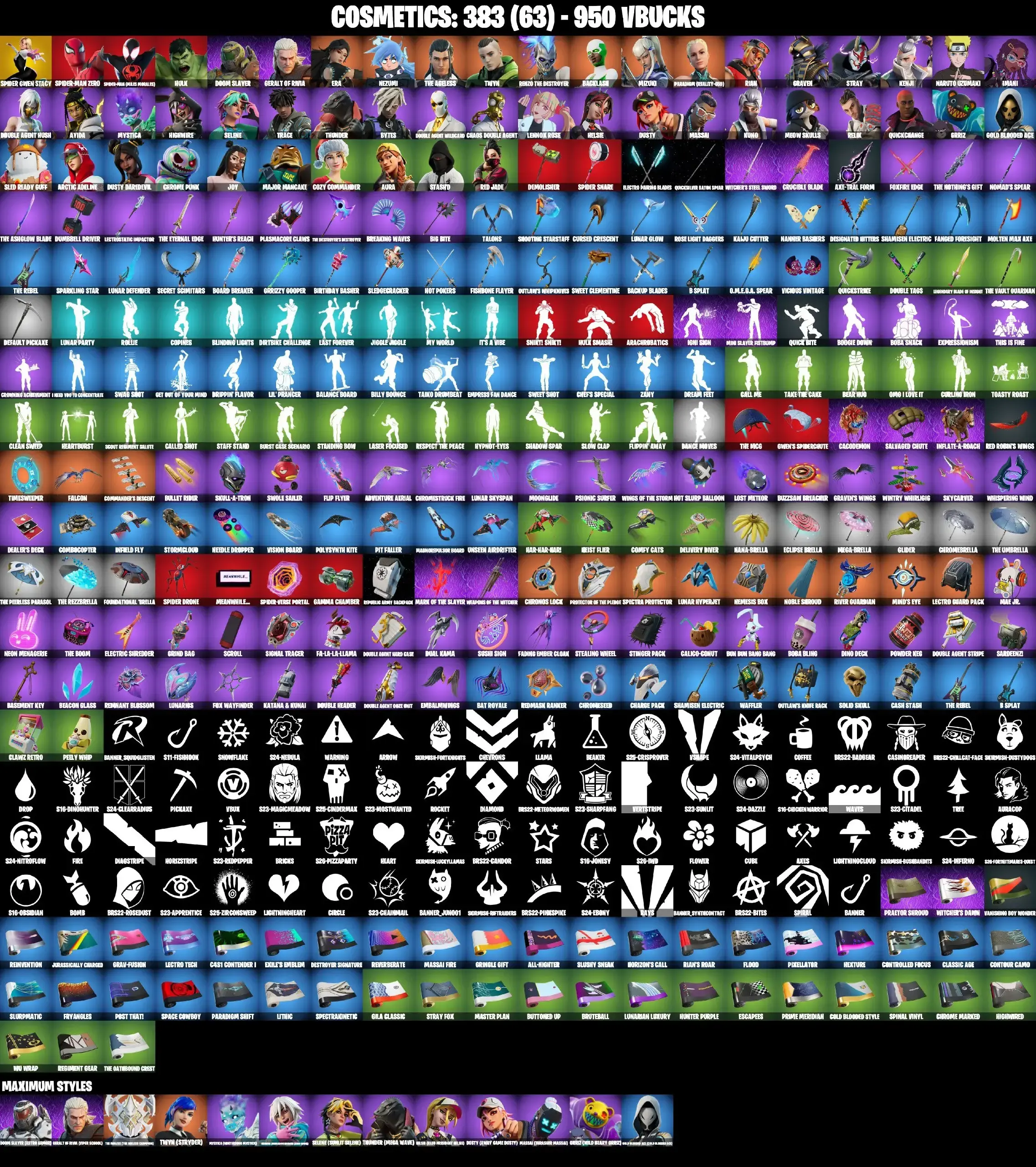 50 SKINS | BACKLASH | SPIDER-MAN MILES MORALES | SPIDER-MAN ZERO | SPIDER-GWEN STACY | NARUTO | MYSTICA MAX | HELSIE MAX | AURA | MEOW SKULLS | BYTES | CAN PLAY ON PSN,XBOX,PC,NINTENDO,MOBILE | 950 VBUCKS | FULL EMAIL ACCESS