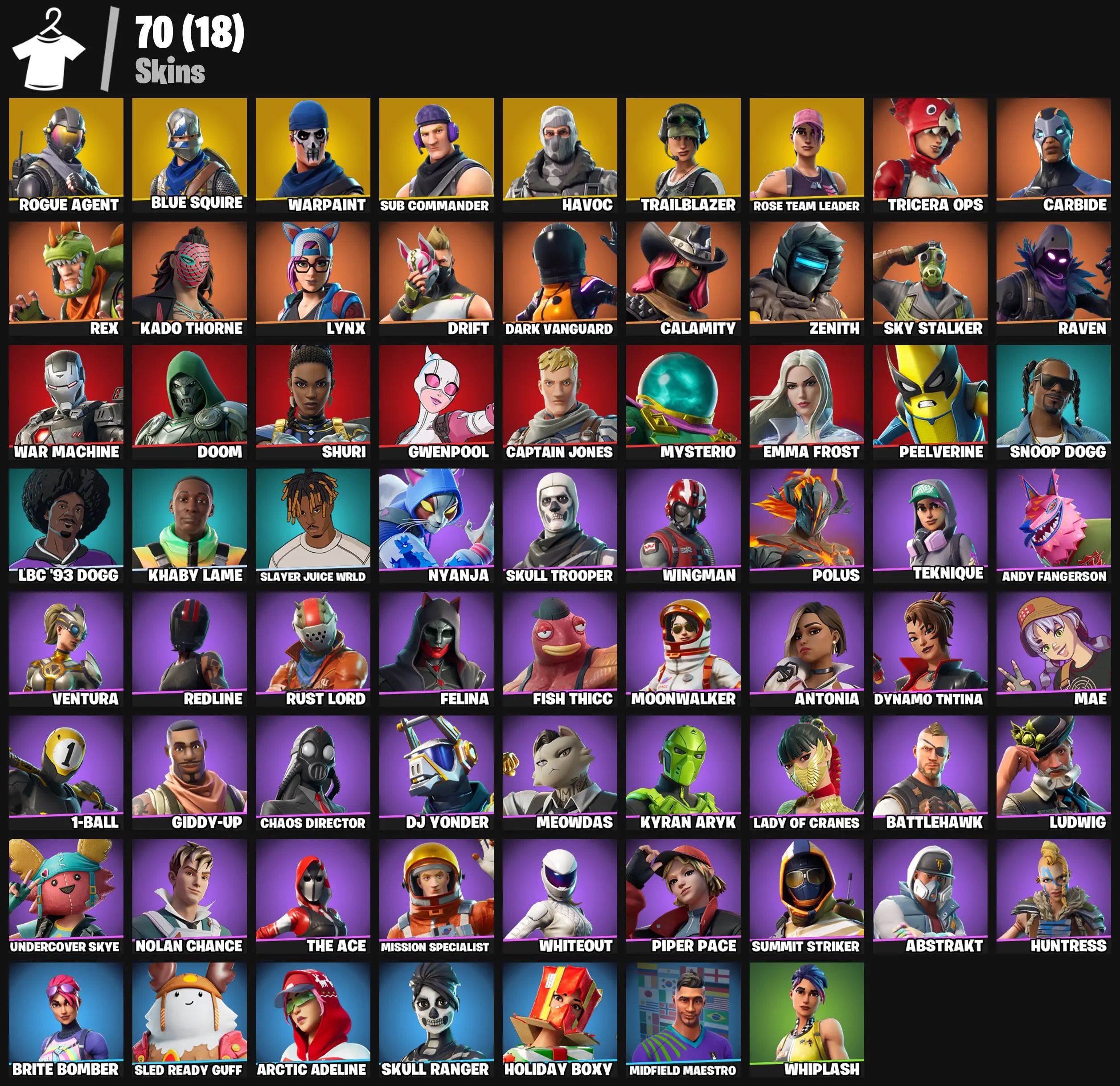 【70 SKINS】 (PC) OG STW | ROGUE AGENT | TAKE THE L | SKULL TROOPER | BLUE SQUIRE | BRITE BOMBER | RAVEN | DARK VANGUARD