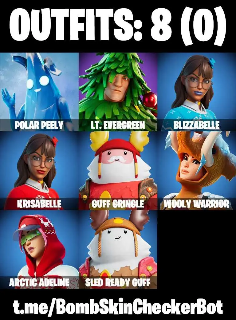 8 Skins✅ Polar Peely, Blizzabelle, Krisabelle, Arctic Adeline, Sled Ready Guff✅ 200 Vbucks✅Mail Changeable✅PC/PSN/XBOX✅
