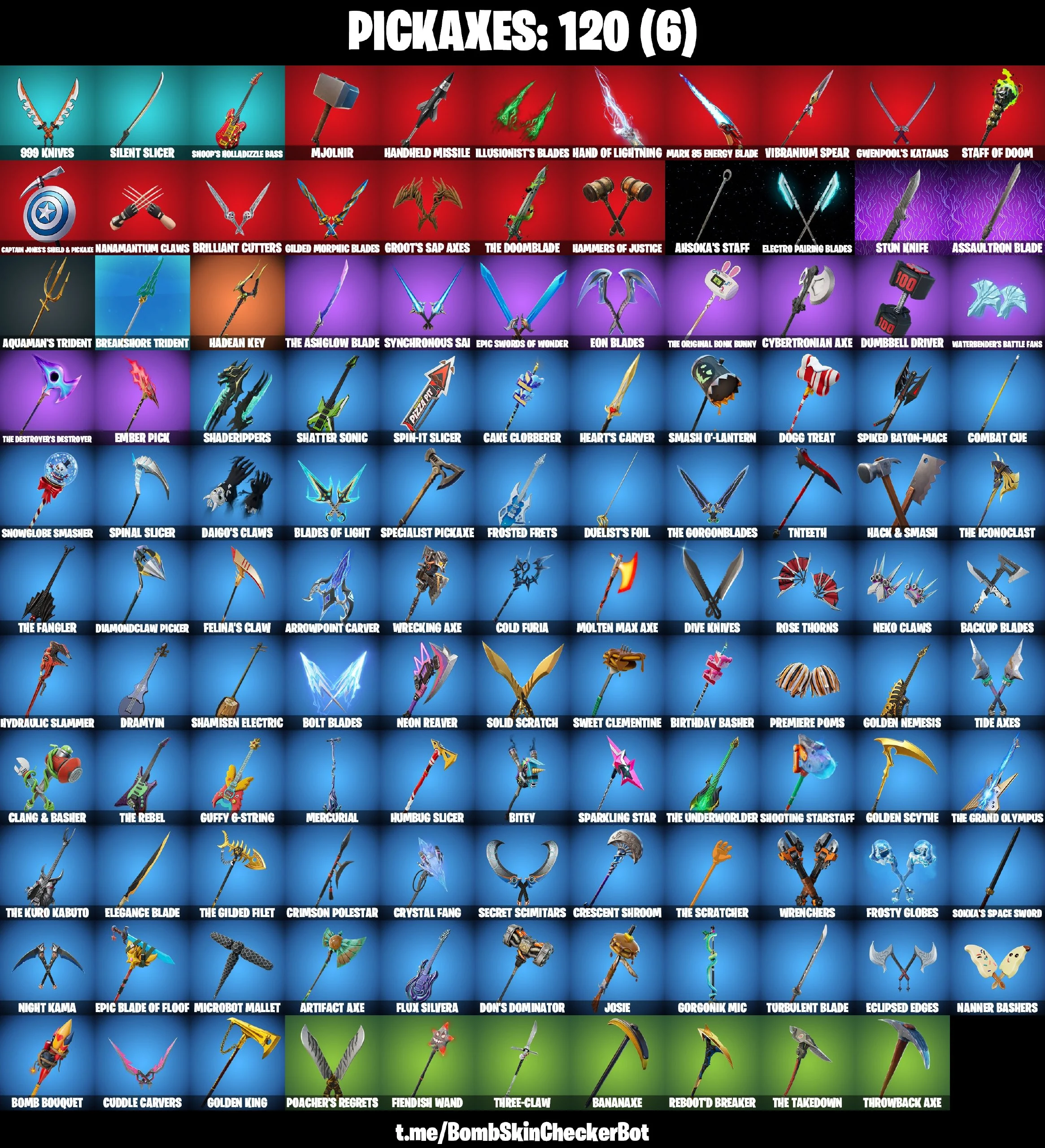 🔮88 Skins🔮 Rogue Spider Knight💎Tony Stark💎Jules💎Polar Peely💎Khaby Lame💎Jennifer Walters💎Solid Snake💎Ocean💎Slayer Juice Wrld💎Holiday Boxy💎Winterfest Bushranger