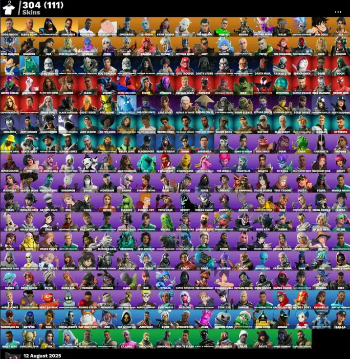 ✨ All Platforms ✨ 304 Skins ✨ John Wick, Eddie Brock ✨Black Adam ✨Ruby Shadows✨ Lara Croft ✨FNCS Champion Seeker✨
