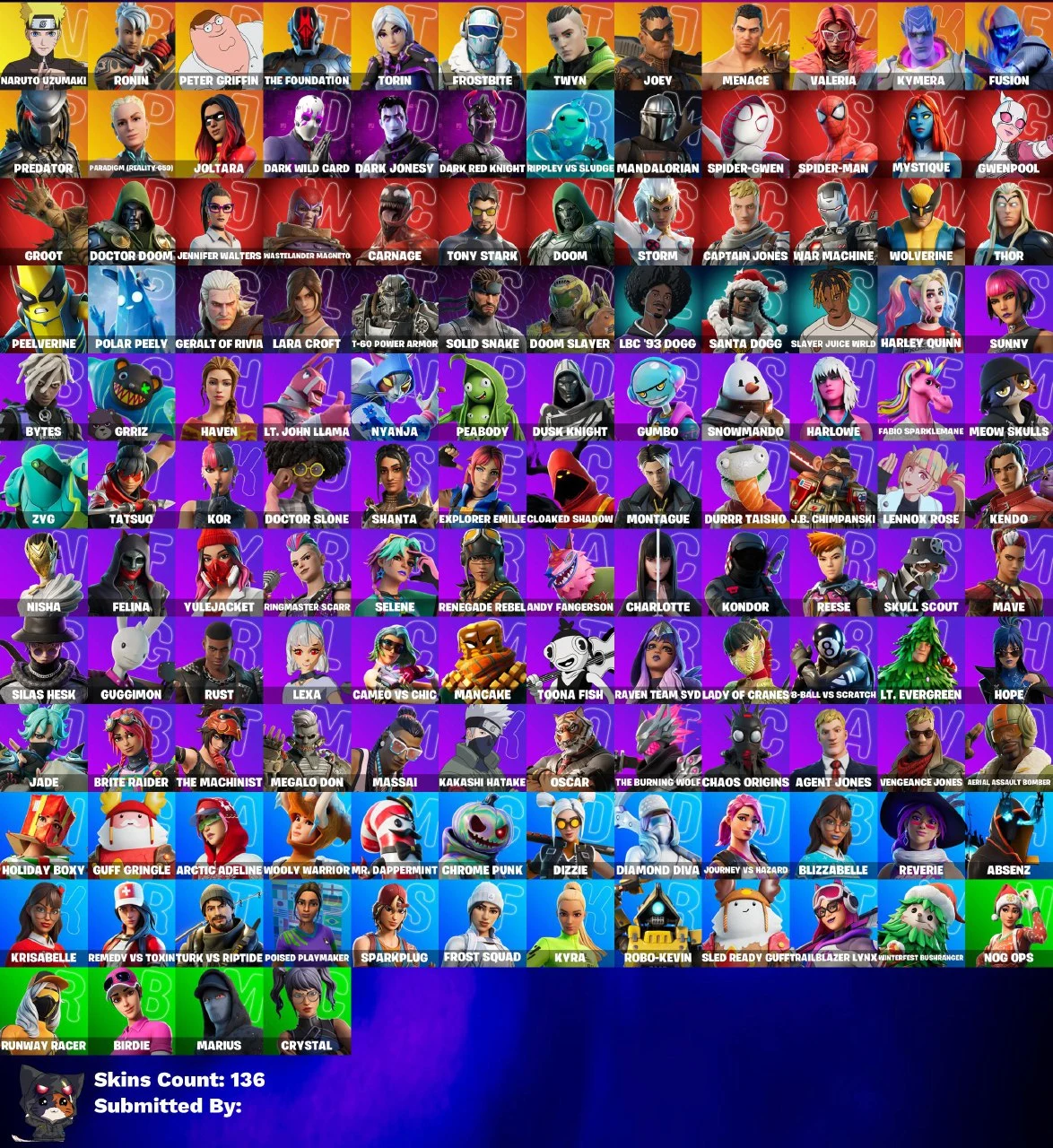π₯π ANIME ACCOUNT ππ₯ 136 SKINS π NARUTO UZUMAKI π RONIN π PETER GRIFFIN π THE FOUNDATION π TORIN π FROSTBITE π TWYN π JOEY π MENACE π VALERIA π KYMERA π FUSION π PREDATOR π PARADIGM (REALITY-659) π JOLTARA π DARK WILD CARD π 1800 VB π FULL ACCESS π