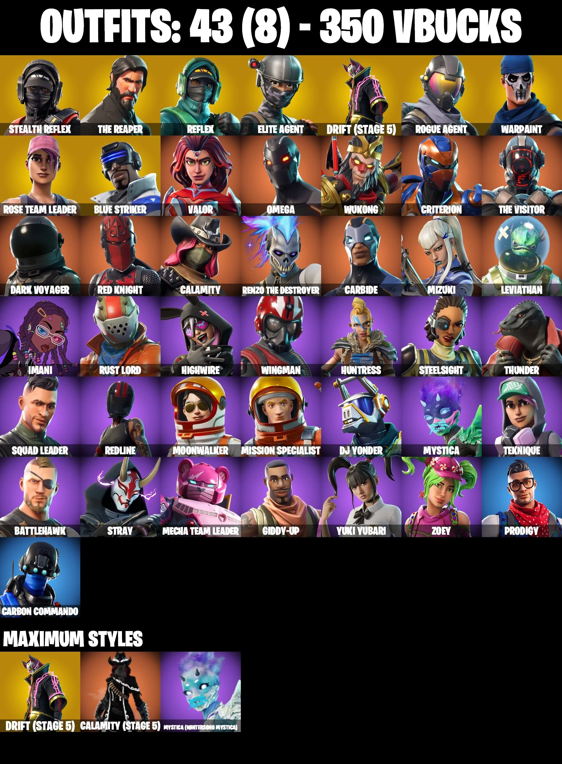 [ALL PLATFORMS] โก 43 SKINS ๐ STEALTH REFLEX ๐ THE REAPER ๐ ELITE AGENT ๐ OG STW ๐ DRIFT STAGE 5 ๐ CALAMITY STAGE 5 ๐ TAKE THE ELF