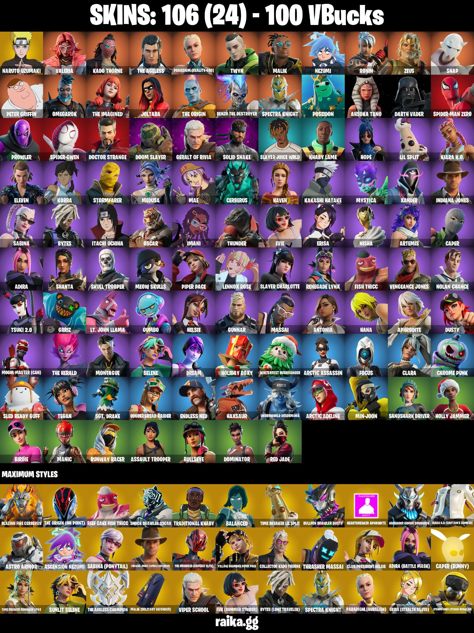 πβ¨OG BUNDLEβ¨π 106 SKINS π SKULL TROOPER π NARUTO UZUMAKI π REAPER π VALERIA π KADO THORNE π THE AGELESS π PARADIGM (REALITY-659) π TWYN π MALIK π NEZUMI π RONIN π ZEUS π SNAP π PETER GRIFFIN π OMEGAROK β‘οΈPC/PSN/XBOXβ‘οΈ