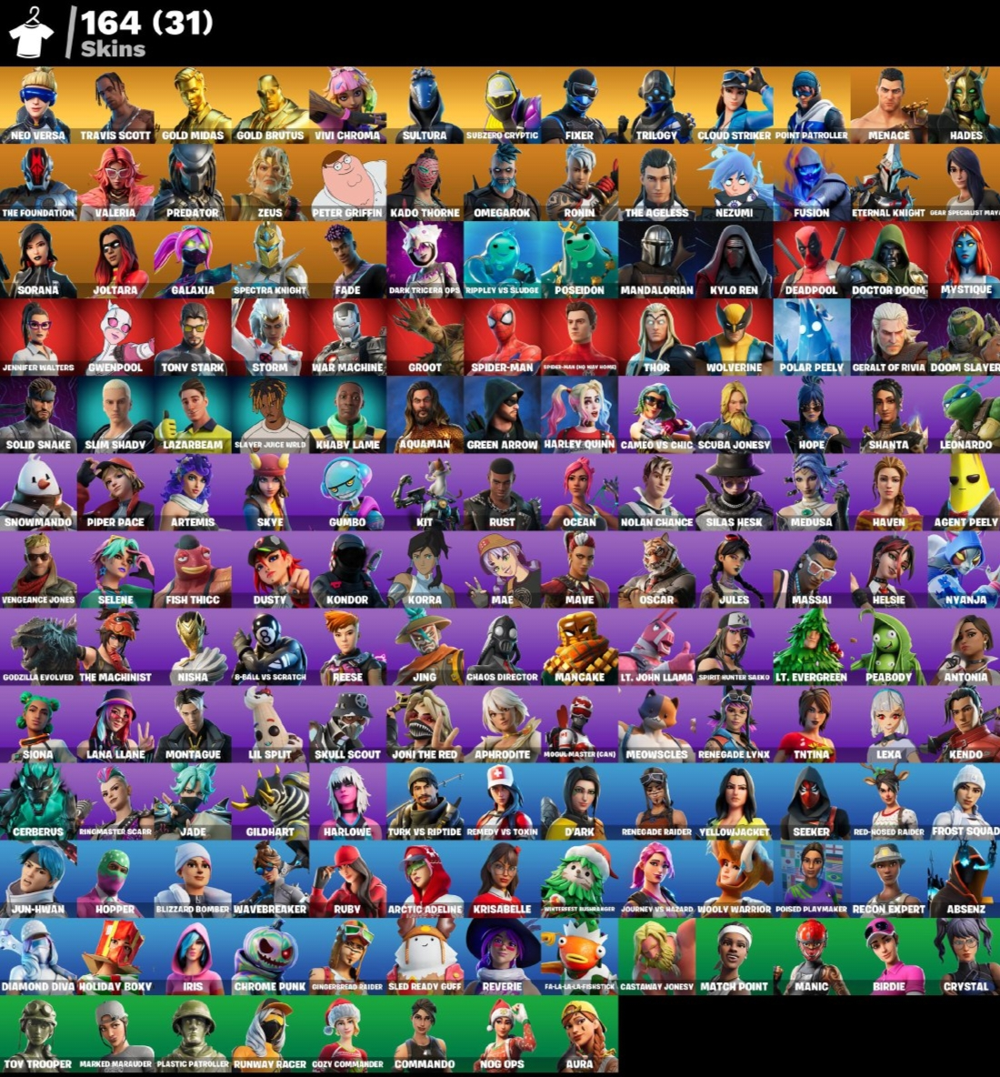 🔥[PC] 164 skins 🔥Neo Versa 🔥Travis Scott 🔥Renegade Raider 🔥Gold Midas 🔥Gold Brutus 🔥Vivi Chroma 🔥 Sultura 🔥 Subzero Cryptic 🔥 Fixer 🔥Trilogy 🔥 200 VB