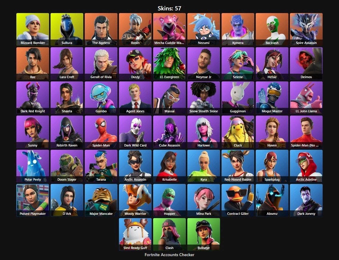 PC 57 Skins⚡ | Lara Croft | Blizzard Bomber | Sultura | The Ageless | Ronin | Mecha Cuddle Master | Nezumi | Kymera | Backlash | Spire Assassin | Raz
