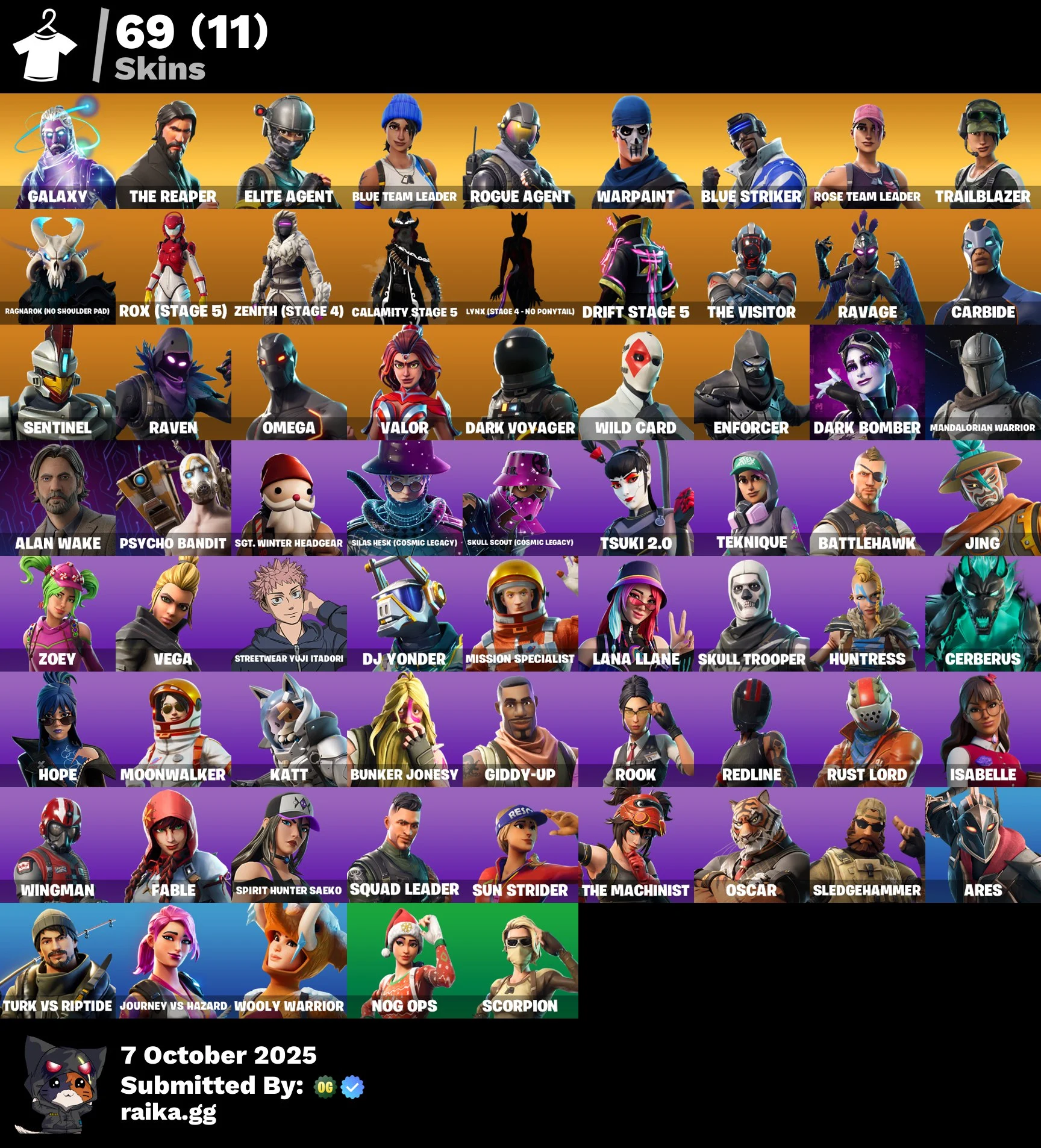 [PC] 69 skins | OG STW | Galaxy | The Reaper | Take The L | Psycho Bandit | Elite Agent | Raven | Omega lai138