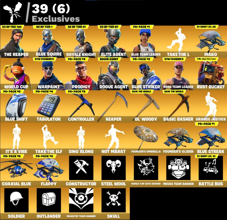 [PC] 97 skins | OG STW | The Reaper | Master Chief | Blue Squire | Royale Knight | Elite Agent | Blue Team Leader | WORLD CUP | Prodigy | Rogue Agent | 50 VB