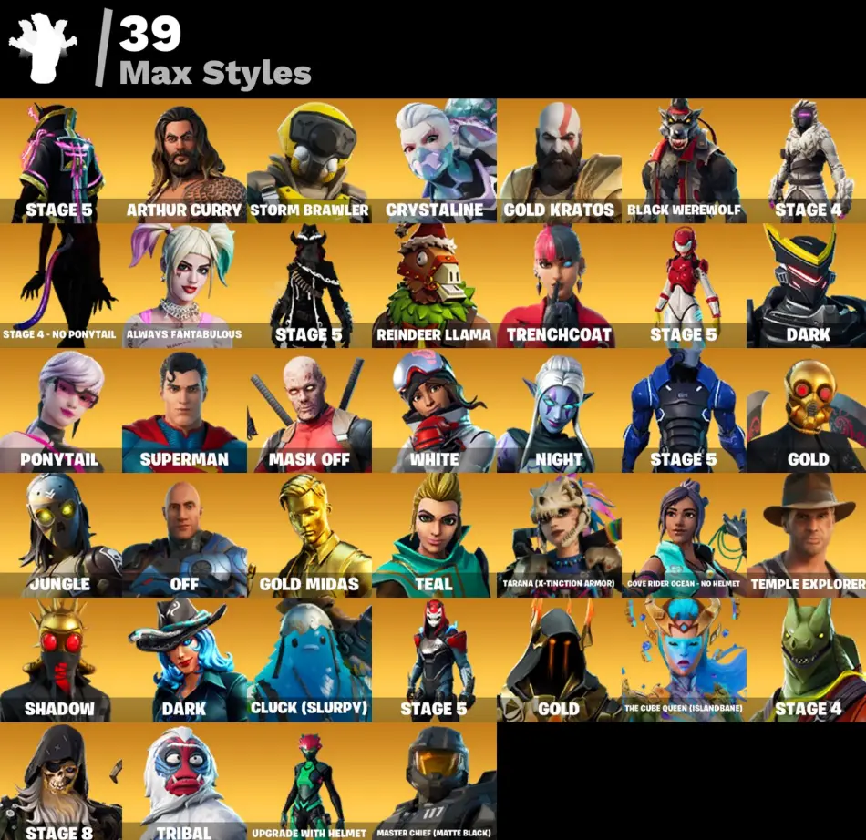 (PC PSN XBOX) 389 skins | LEVIATHAN AXE / 209 PURCHASED SKINS / Renegade Raider | Aerial Assault Trooper | Glow | Gold Kratos | Gold Midas | Master Chief (Matte Black) | Clutch | Grind / TAKE THE L