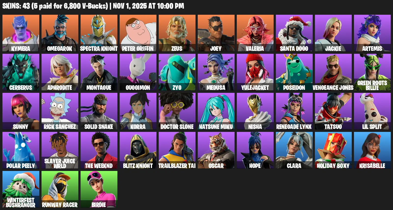 [PC/PSN] | 43 skins | Kymera | Omegarok | Spectra Knight | Peter Griffin | Zeus | Joey | Valeria | Santa Dogg | Jackie | Artemis | #UOB3432 | #MBFN