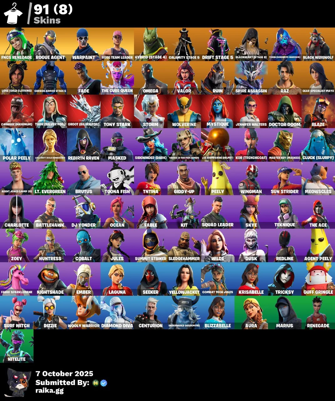 [PC/PSN] 91 skins | OG STW | Jules | Aura | Tony Stark | Surf Witch | Peely | Omega | Harley Hitter | Mystique lai131