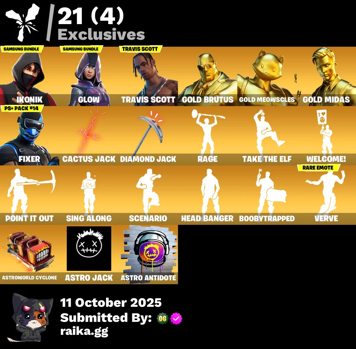 [PC/PSN/XBOX] 111 skins | IKONIK | Glow | Travis Scott | Gold Brutus | Gold Meowscles | Gold Midas | Fixer | Zenith | Blackheart | The Prisoner | Kado Thorne | 450 VB