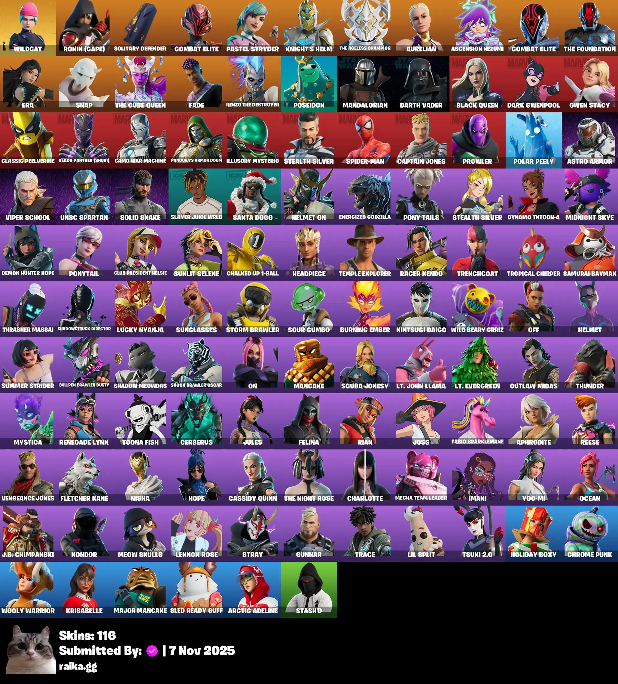 [PC/PSN/XBOX] 116 skins | Wildcat | Ronin (Cape) | Solitary Defender | Combat Elite | Pastel Stryder | Knight's Helm | The Ageless Champion | Aurelian