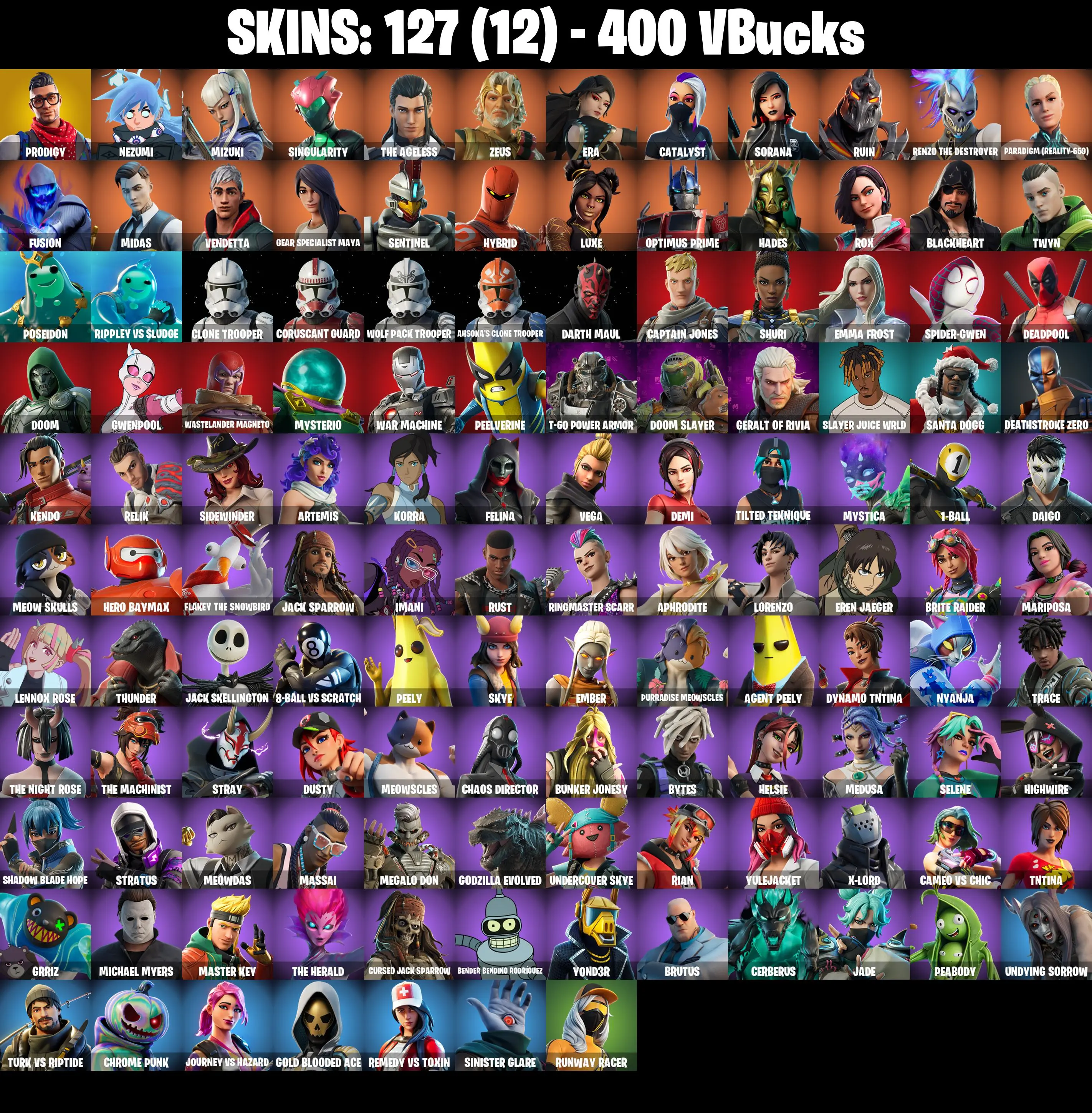 PC/PSN/XBOX ♨️127 skins ✨ Deadpool ✨ Spider-Gwen ✨ Luxe ✨ Peely ✨ Vendetta ✨ Fusion ✨ Midas ✨ The Ageless ✨ Mizuki ✨ Optimus Prime ✨ #B807