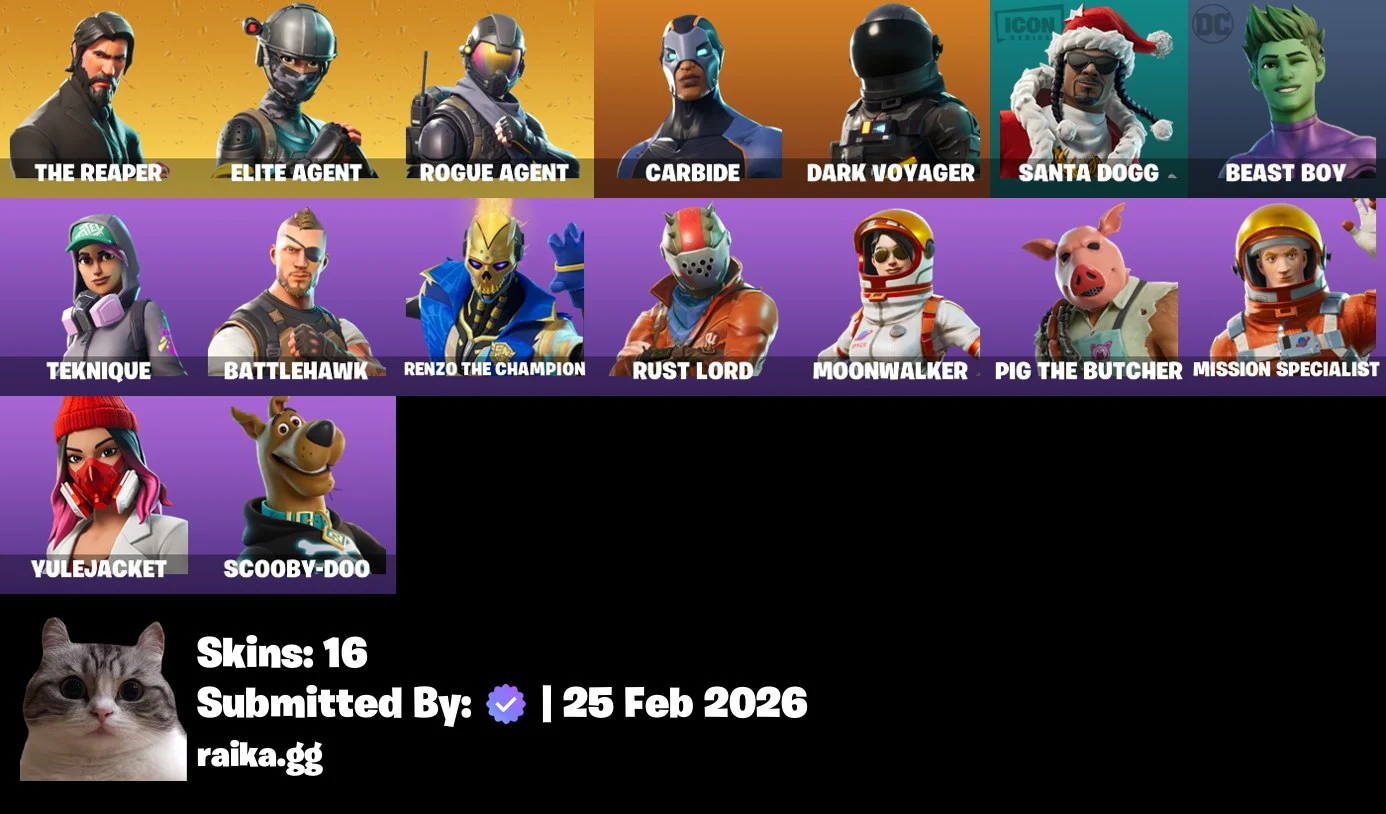 [PC/PSN/XBOX] 16 skins | The Reaper | Elite Agent | Rogue Agent | Carbide | Dark Voyager | Santa Dogg | Beast Boy | Teknique | Battlehawk | 100 VB