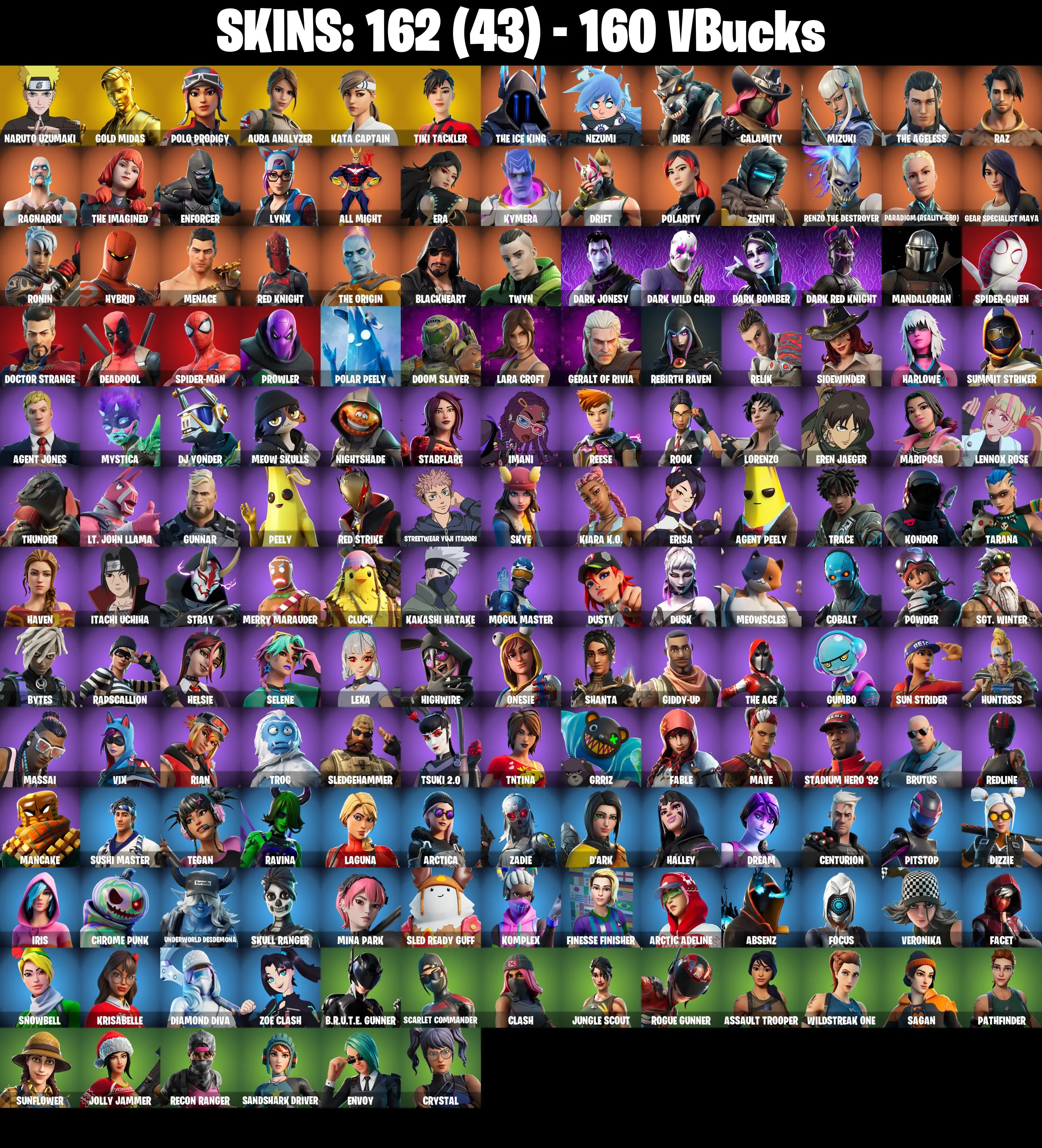 PC/PSN/XBOX ♨️162 skins ✨ Naruto Uzumaki ✨ Kakashi Hatake ✨ Leviathan Axe ✨ Lara Croft ✨ Deadpool ✨ Gold Midas ✨ Candy Axe ✨ Reaper ✨ #B801