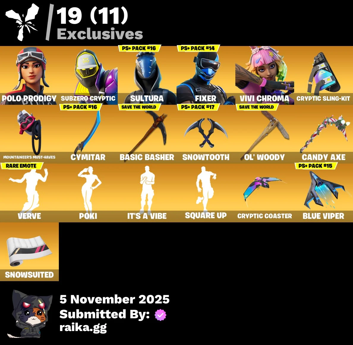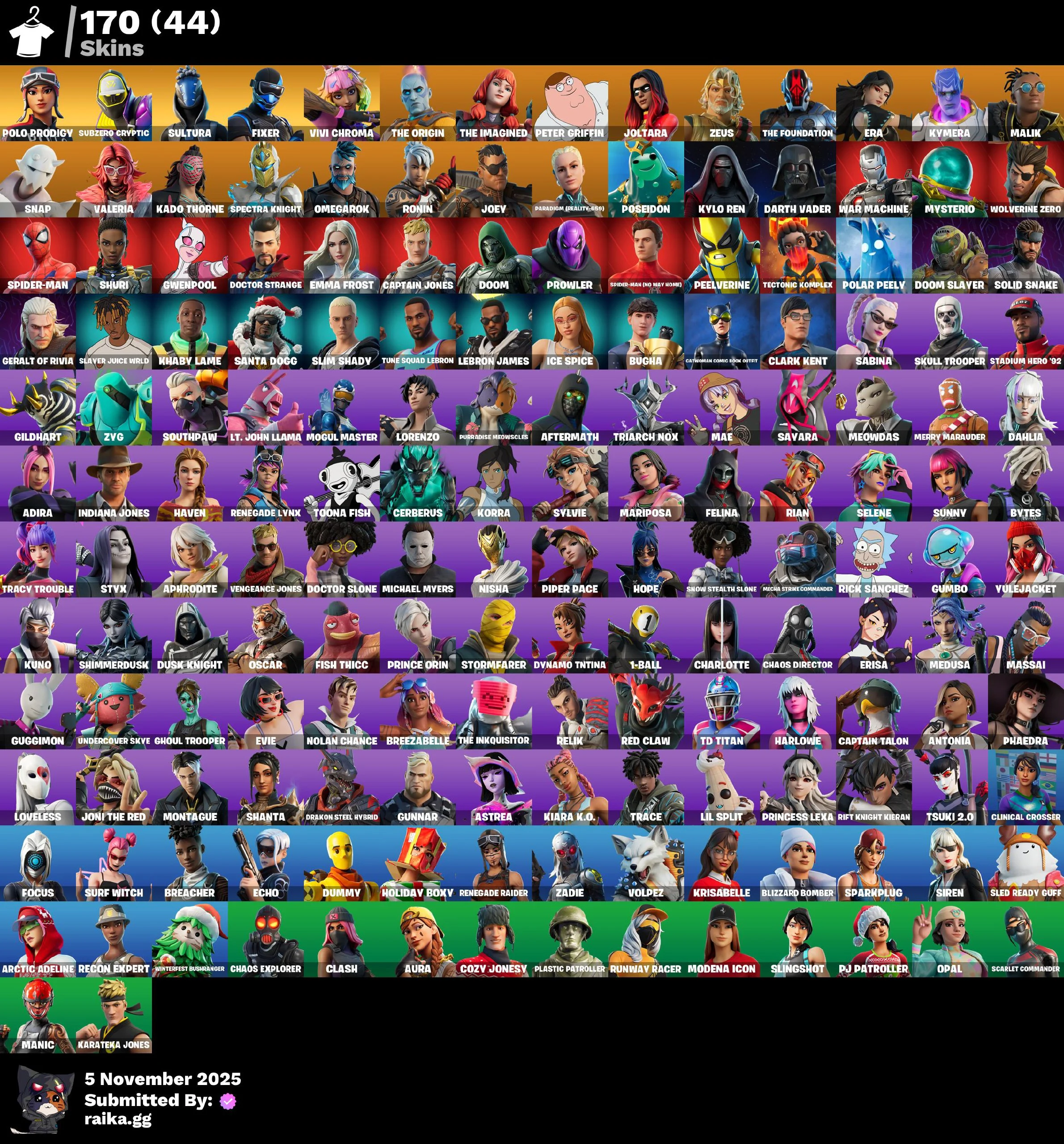 [PC/PSN/XBOX] 170 skins | Polo Prodigy | Renegade Raider | Subzero Cryptic | Sultura | Fixer | Vivi Chroma | The Origin | The Imagined | Peter Griffin | Joltara | 100 VB