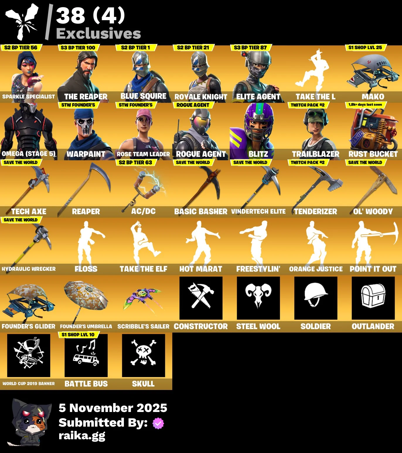 [PC/PSN/XBOX] 193 skins | OG STW | Sparkle Specialist | The Reaper | Blue Squire | Royale Knight | Elite Agent | Omega (stage 5) | Rogue Agent | Blitz | Trailblazer | 450 VB