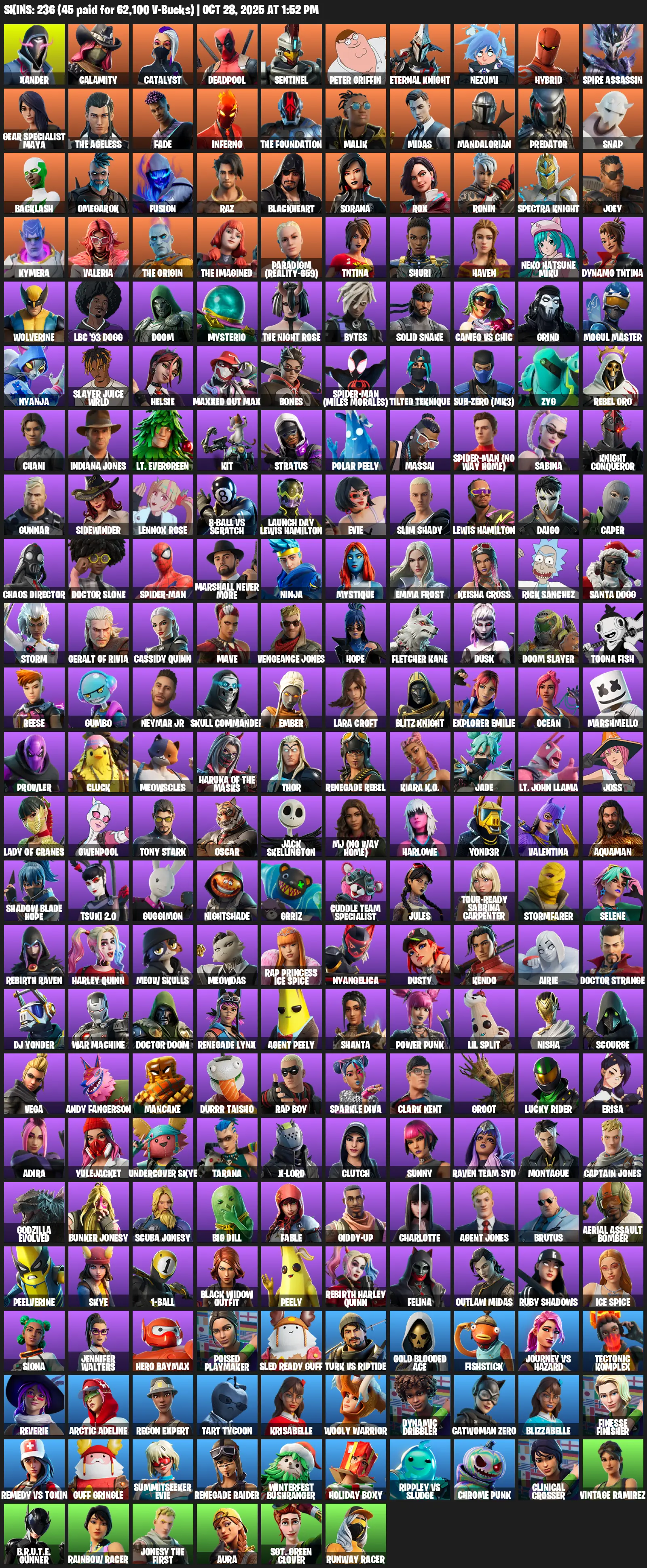 [PC/PSN/XBOX] | 236 skins | 750 V-bucks | Renegade Raider | Lara Croft | Reaper Axe | Xander | Calamity | Catalyst | Deadpool | #REW8815 | #MBFN