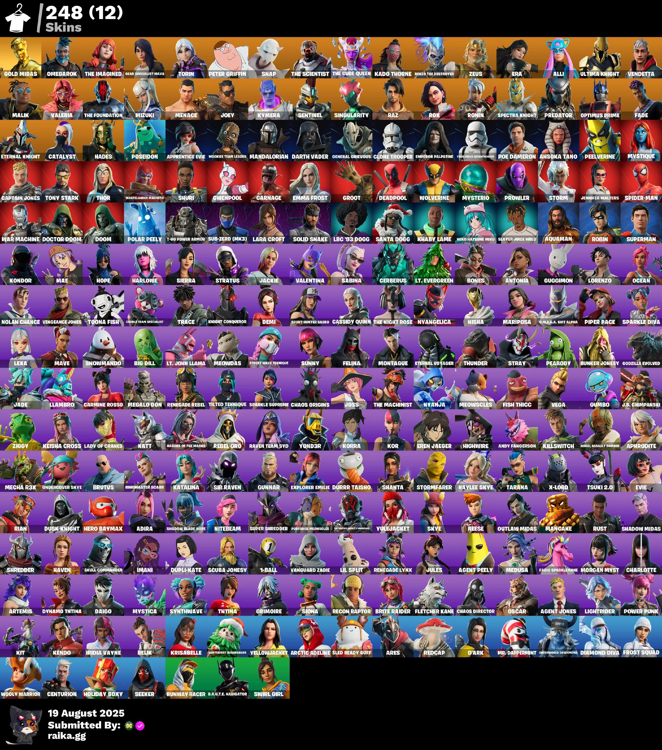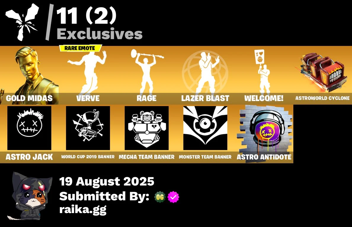 [PC/PSN/XBOX] 248 skins | Gold Midas | Verve | Rage | Lazer Blast | Welcome! | Astroworld Cyclone | Astro Jack | World Cup 2019 Banner | Mecha Team Banner | 1370 VB
