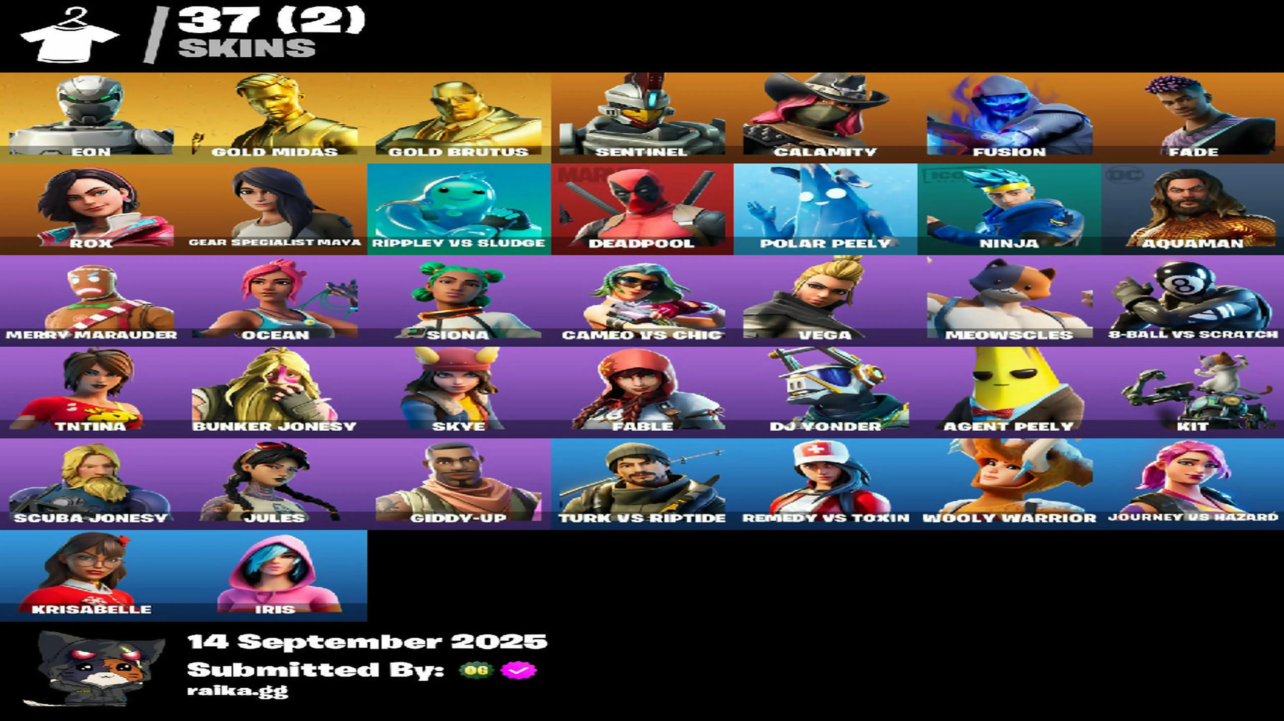⭐{PC/PSN/XBOX} ⚡️ 37 SKINS ⚡️ EON ⚡️ GOLD BRUTUS ⚡️ GOLD MIDAS ⚡️ FUSION ⚡️ GEAR SPECIALIST MAYA ⚡️ FADE ⚡️ CALAMITY ⚡️ ROX ⚡️ SENTINEL ⚡️ RIPPLEY VS SLUDGE| 900 VB