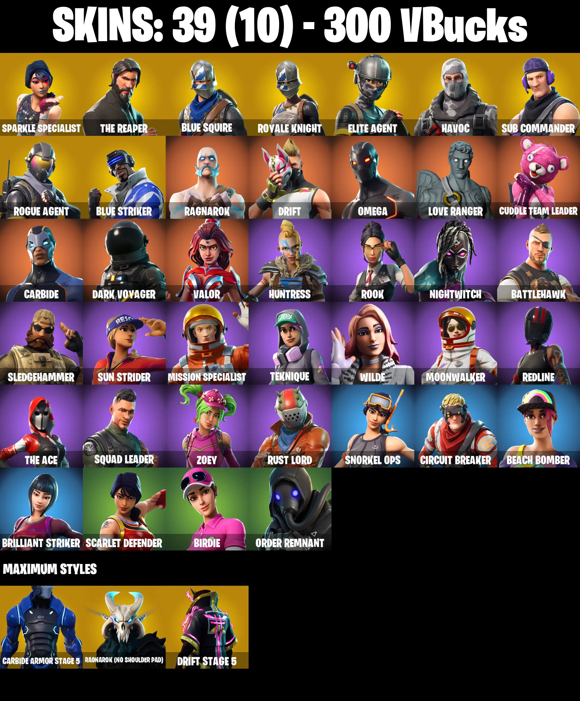 ๐ [PC/PSN/XBOX] 39 SKINS | Sparkle Specialist, The Reaper, Blue Squire, Royale Knight, Elite Agent, Take The L, Havoc, Sub Commander, Rogue Agent, Blue Striker, Ragnarok, Drift, Omega, Love Ranger, Cuddle Team Leader, Carbide