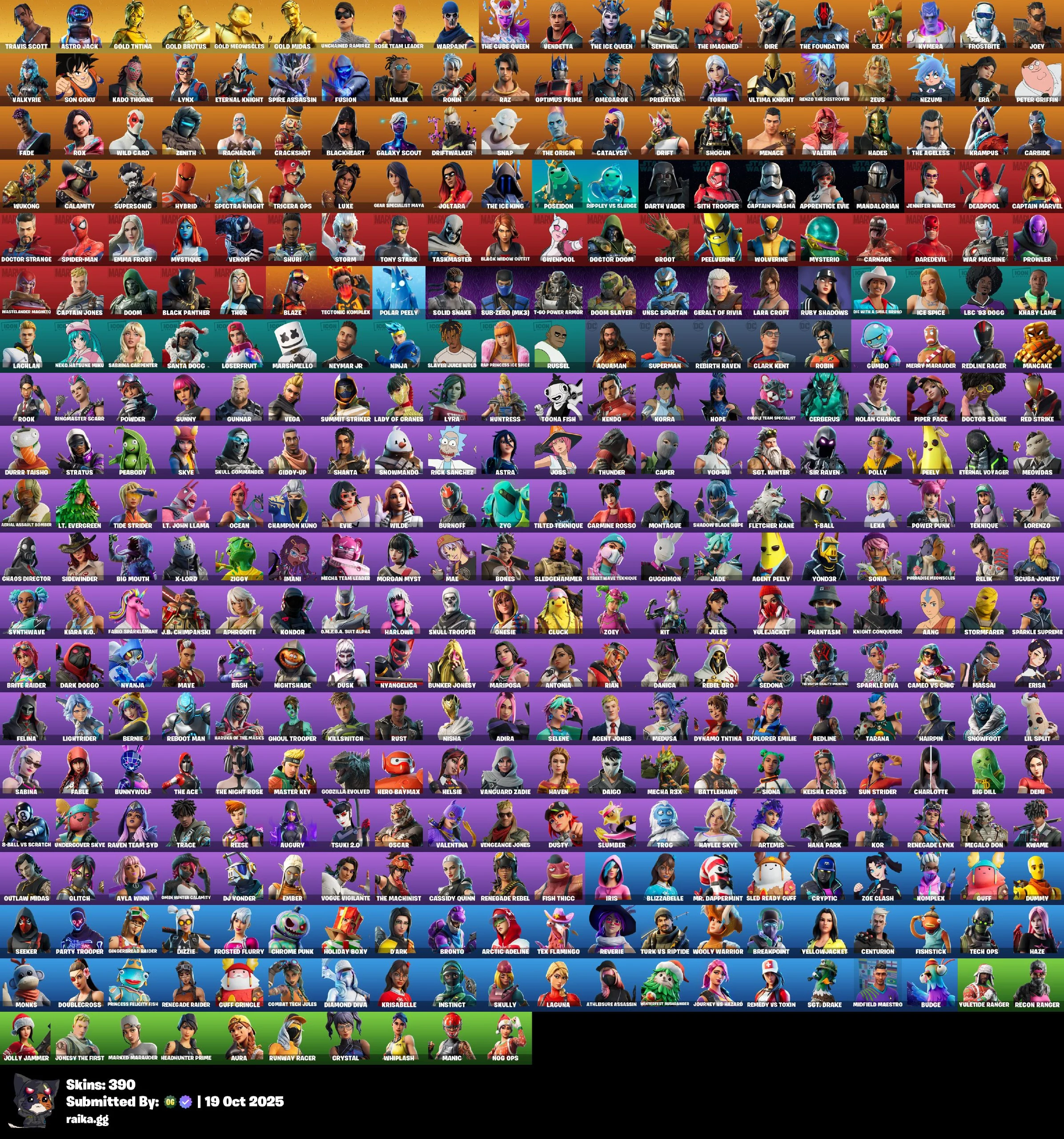 [PC/PSN/XBOX] 390 skins | OG STW | Travis Scott | Astro Jack | Renegade Raider | Gold TNTina | Gold Brutus | Gold Meowscles | Gold Midas | Unchained Ramirez | 1650 VB